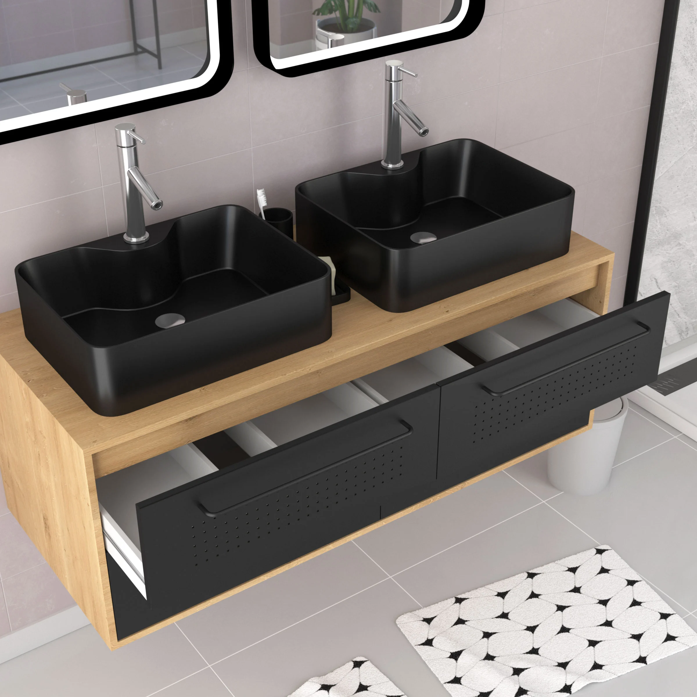 LE MEUBLE DOUBLE VASQUES AUX FINITIONS MÉTALLIQUES