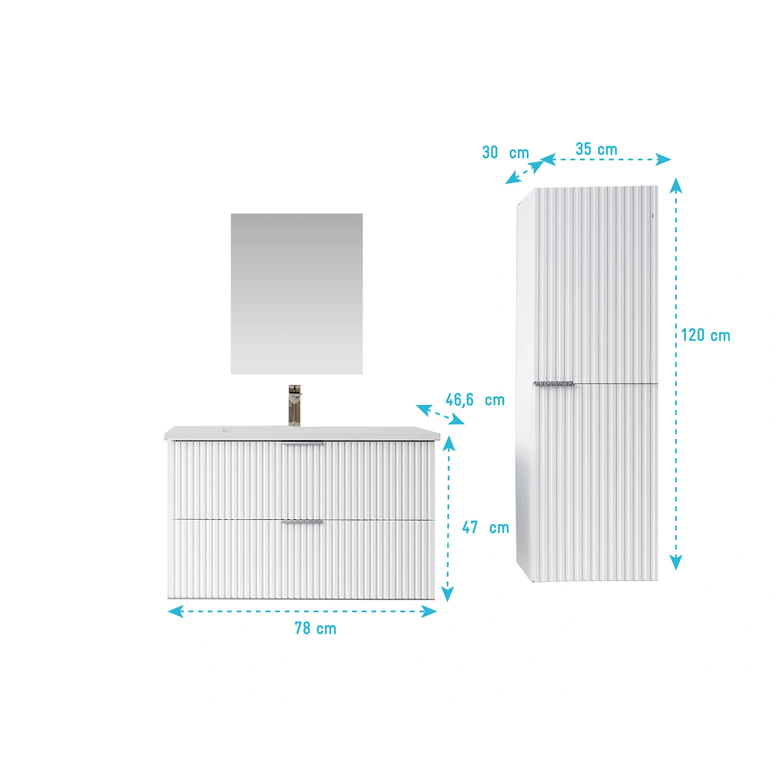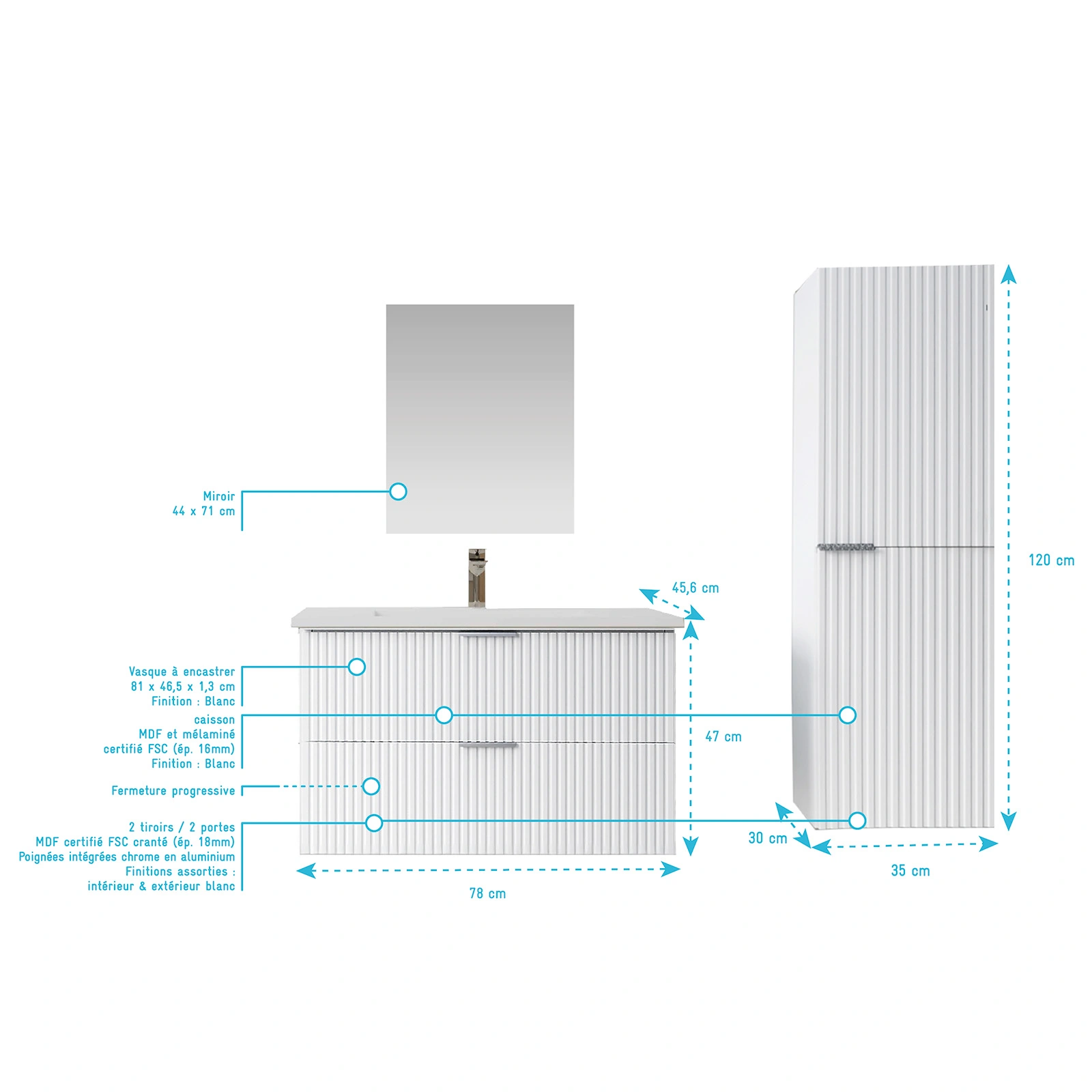 Pack Meuble salle de bain 80cm et Colonne de rangement – Façades Blanches Ondulées – MILO
