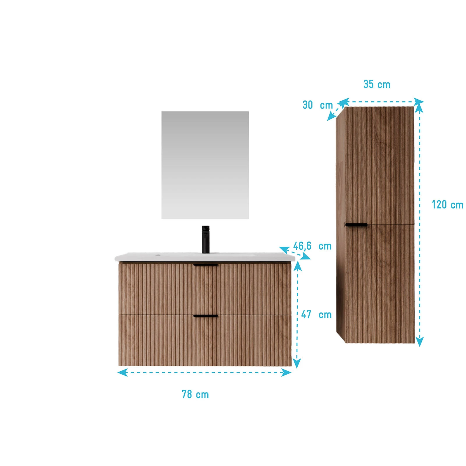 Pack Meuble salle de bain 80cm et Colonne de rangement – Façades Ondulées Décor Bois – MILO