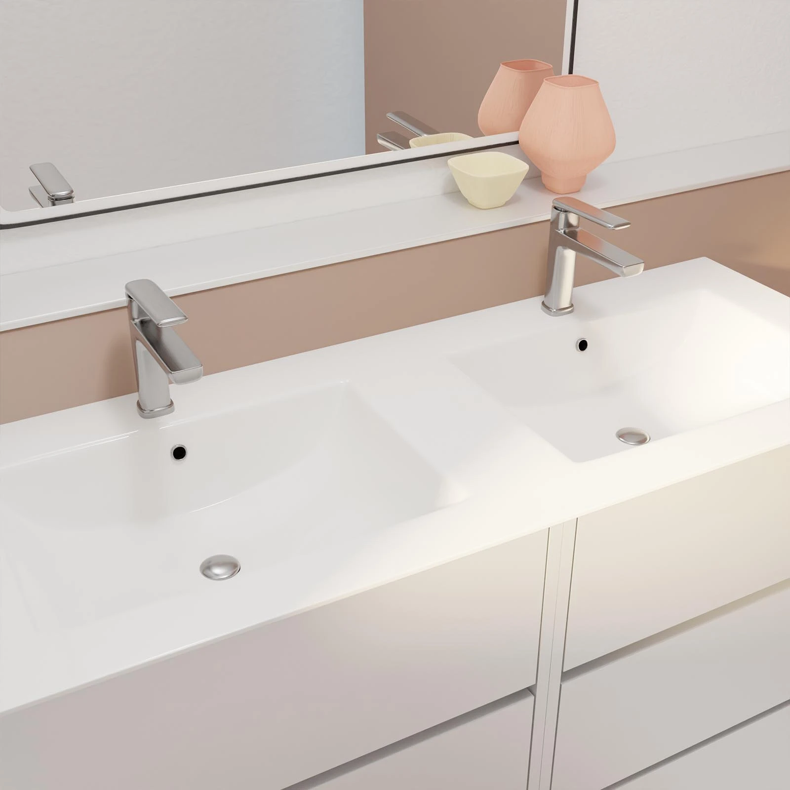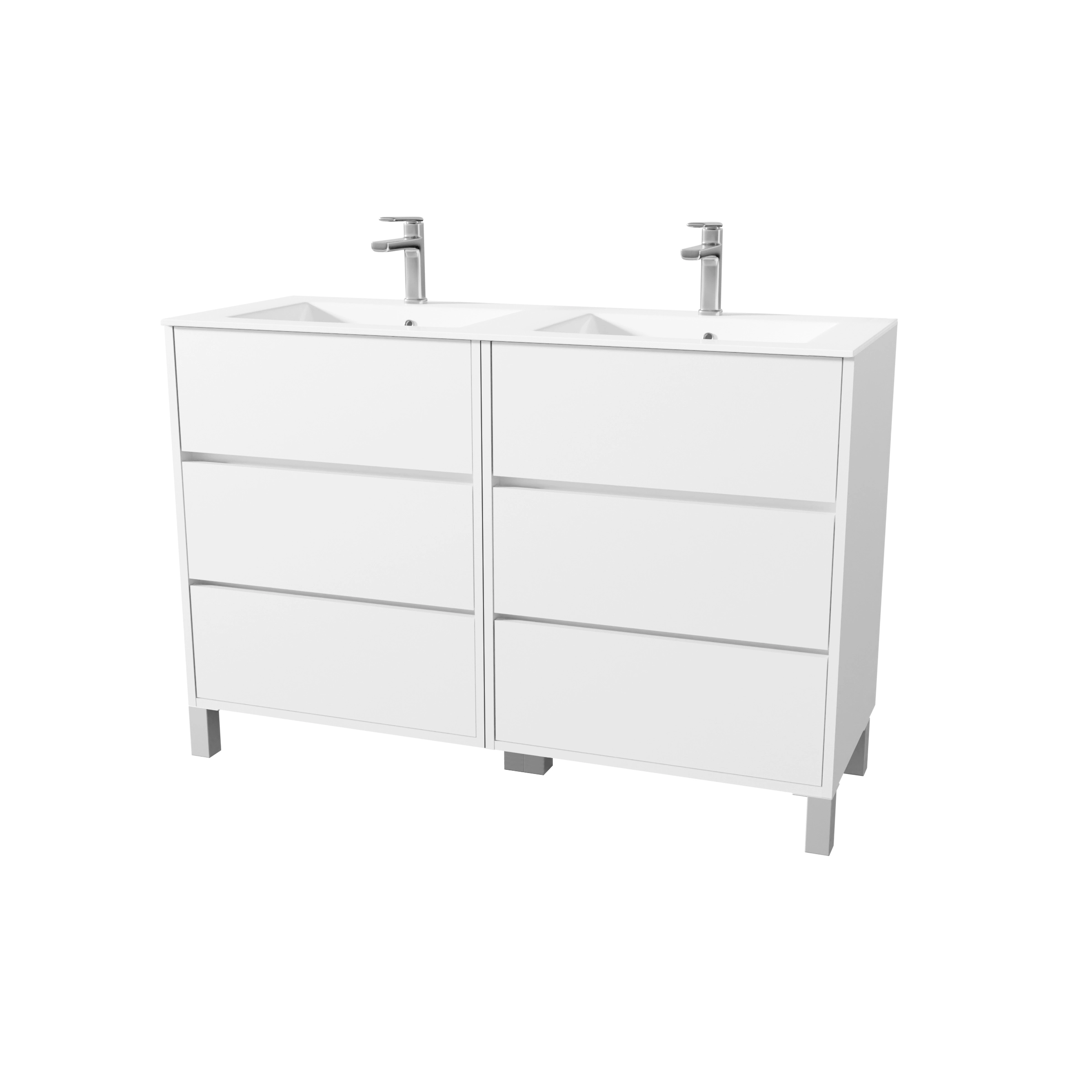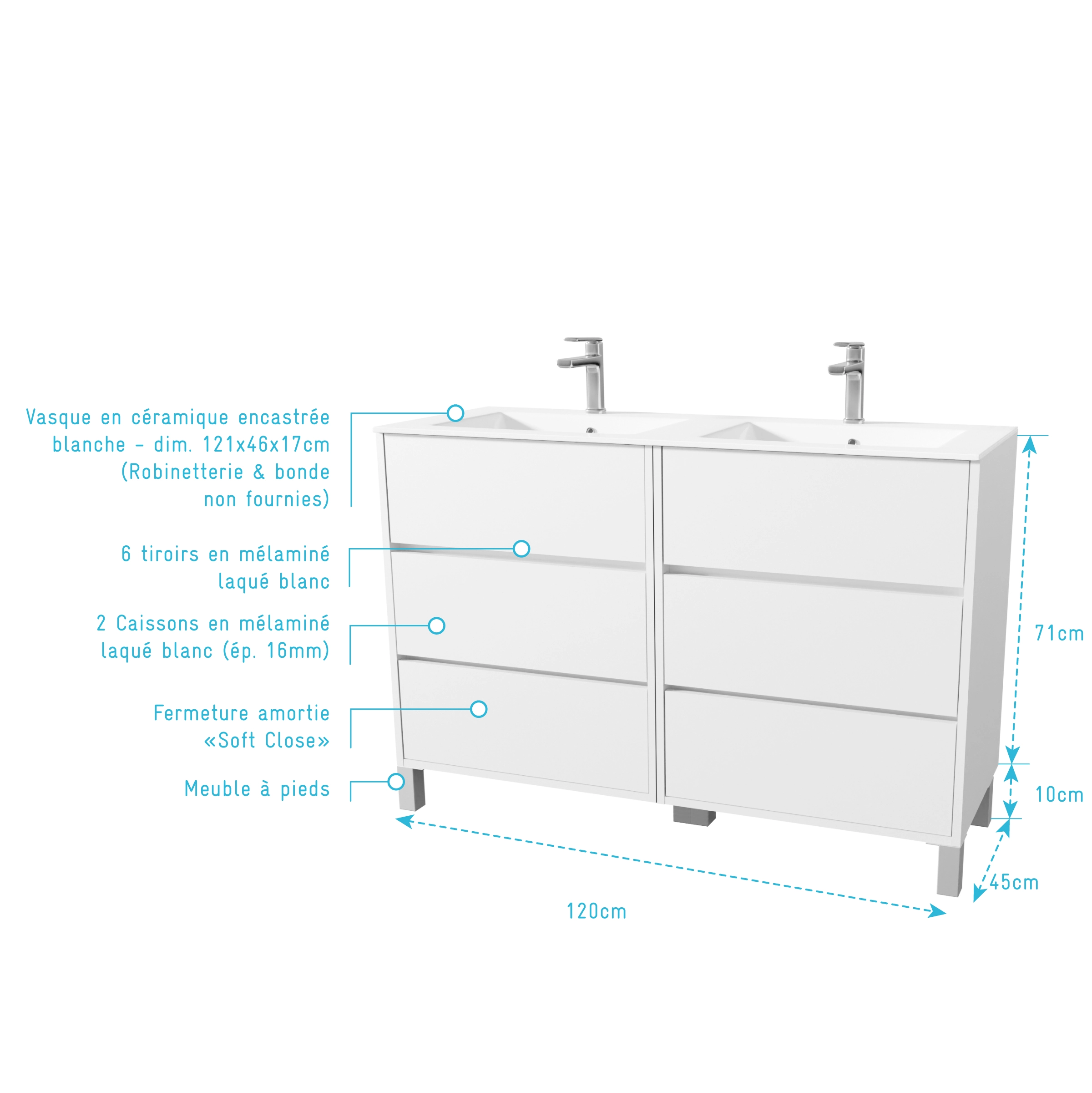 2 avis pour Pack Meuble Salle de Bains 120 cm Laqué Blanc, 6 tiroirs avec Vasque Céramique – XENOS