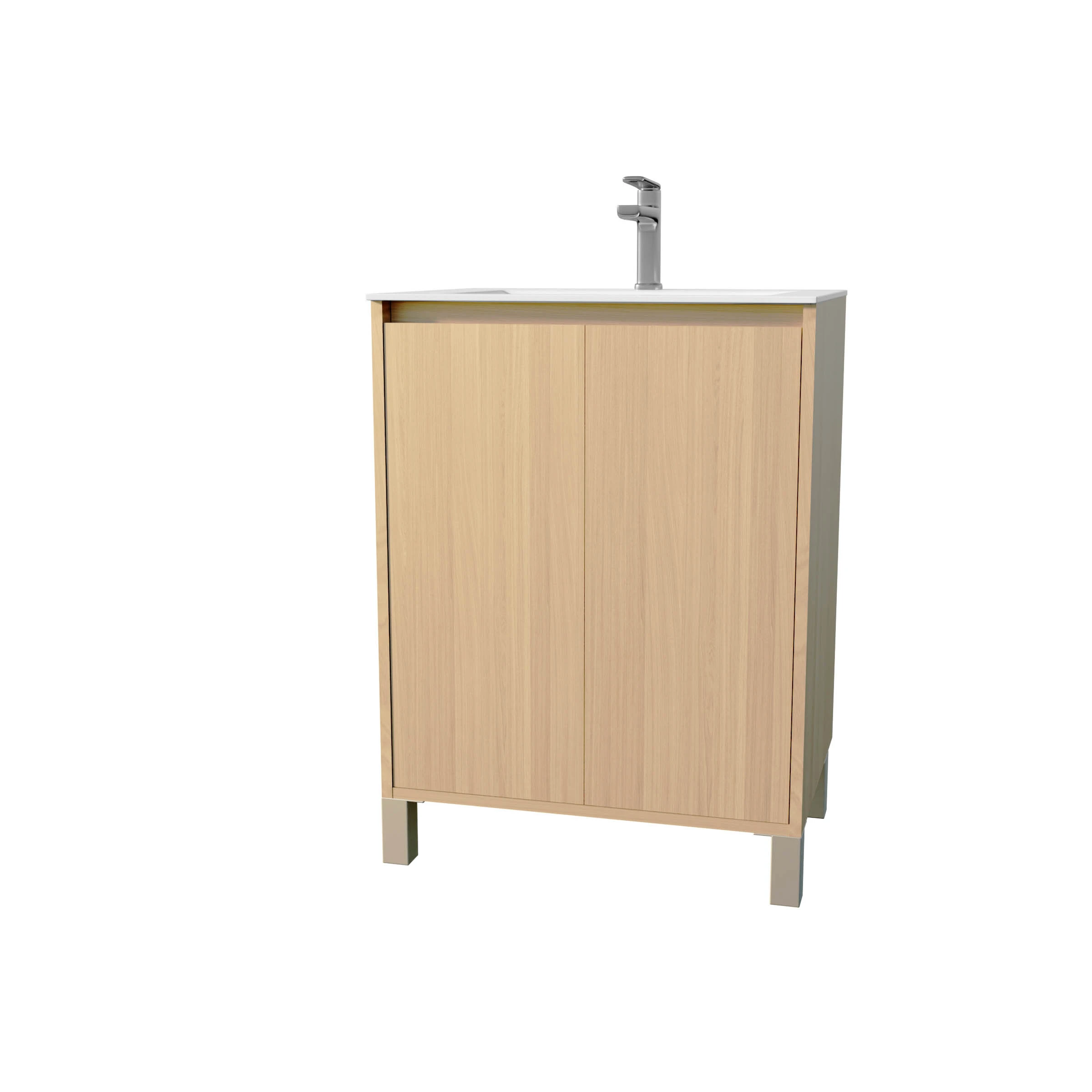 Pack Meuble Salle de Bains 60 cm Chêne Clair, 2 portes avec Vasque Céramique – XENOS