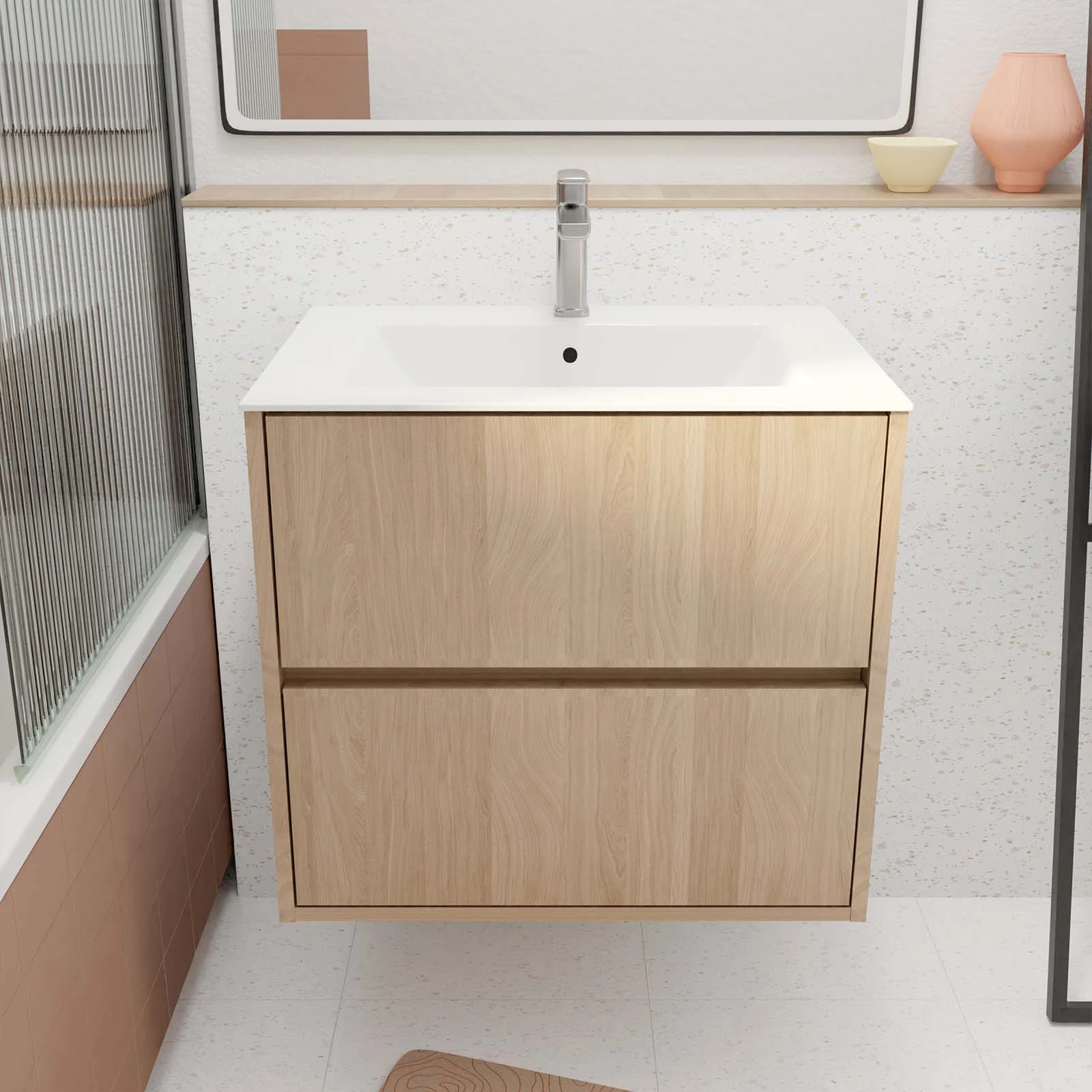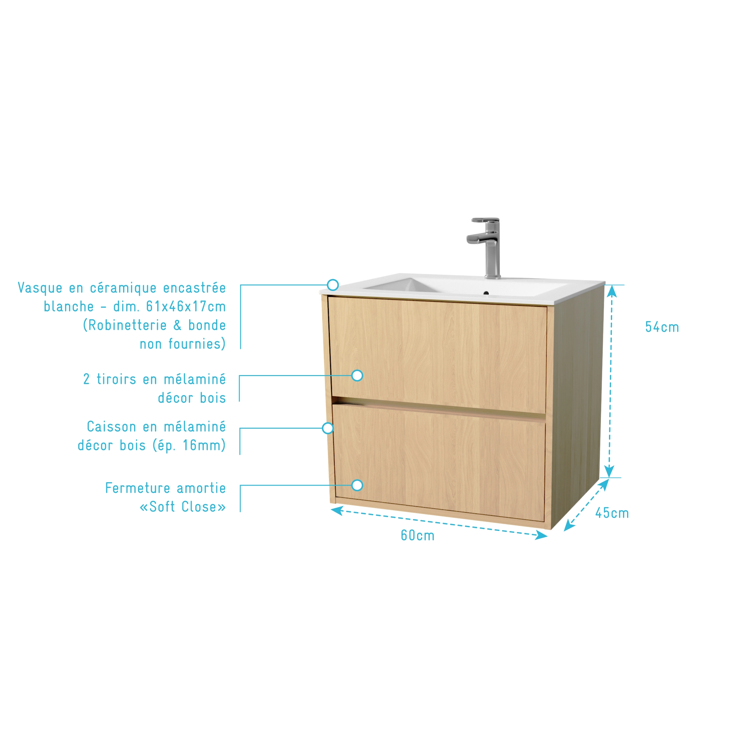 0 avis ONE Meuble de salle de bains 60cm Chêne Clair 2 tiroirs avec Vasque céramique blanche - ONE