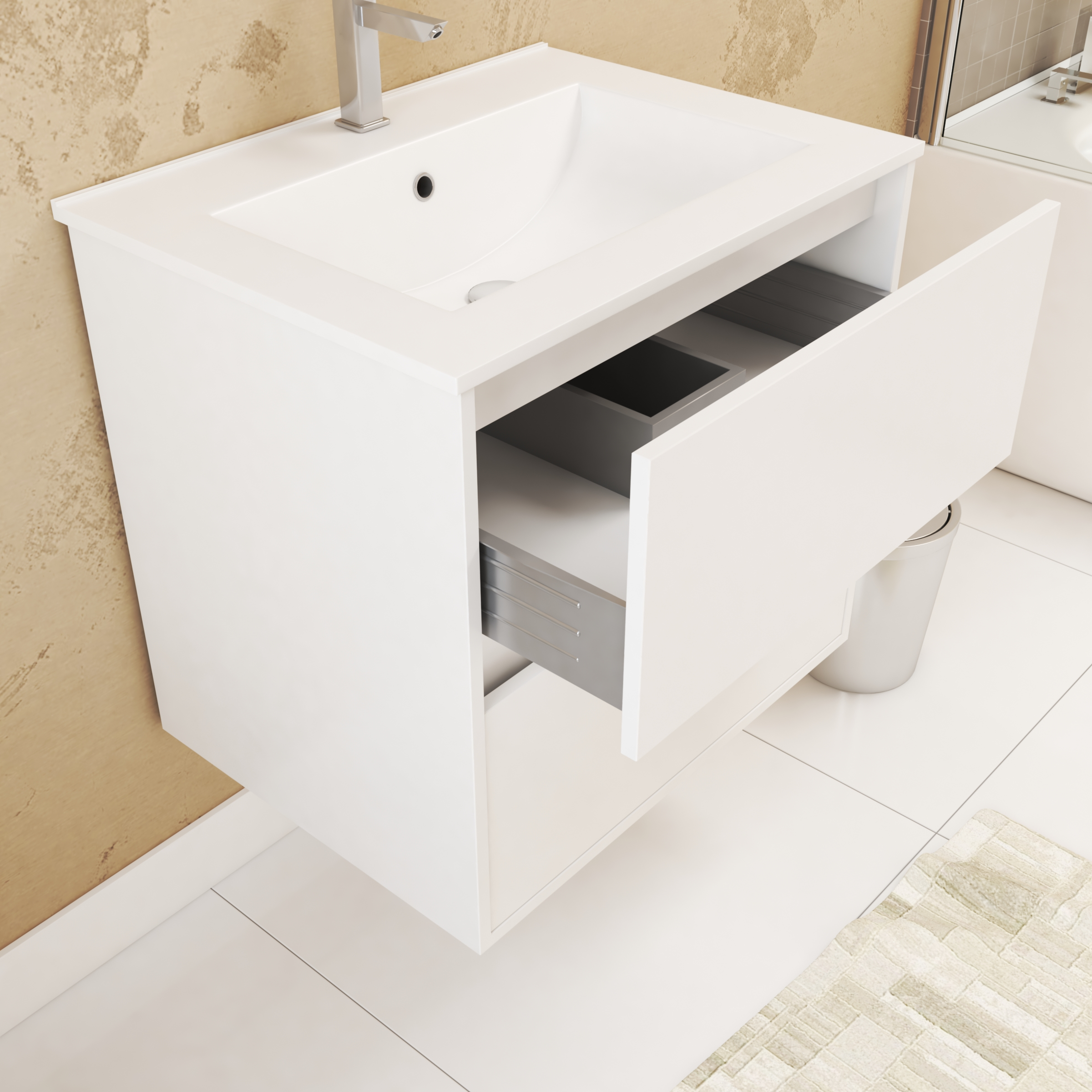 0 avis ONE Meuble de salle de bains 60cm Blanc Glossy 2 tiroirs avec Vasque céramique blanche - ONE
