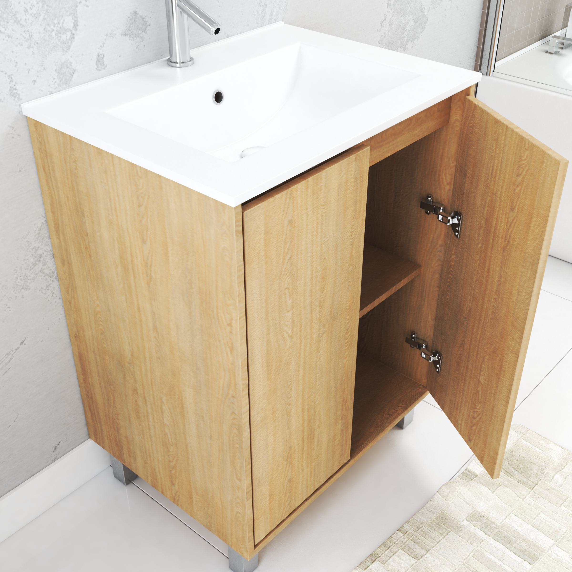 0 avis ONE Meuble de salle de bains 60cm Chêne Clair 2 tiroirs avec Vasque céramique blanche - ONE