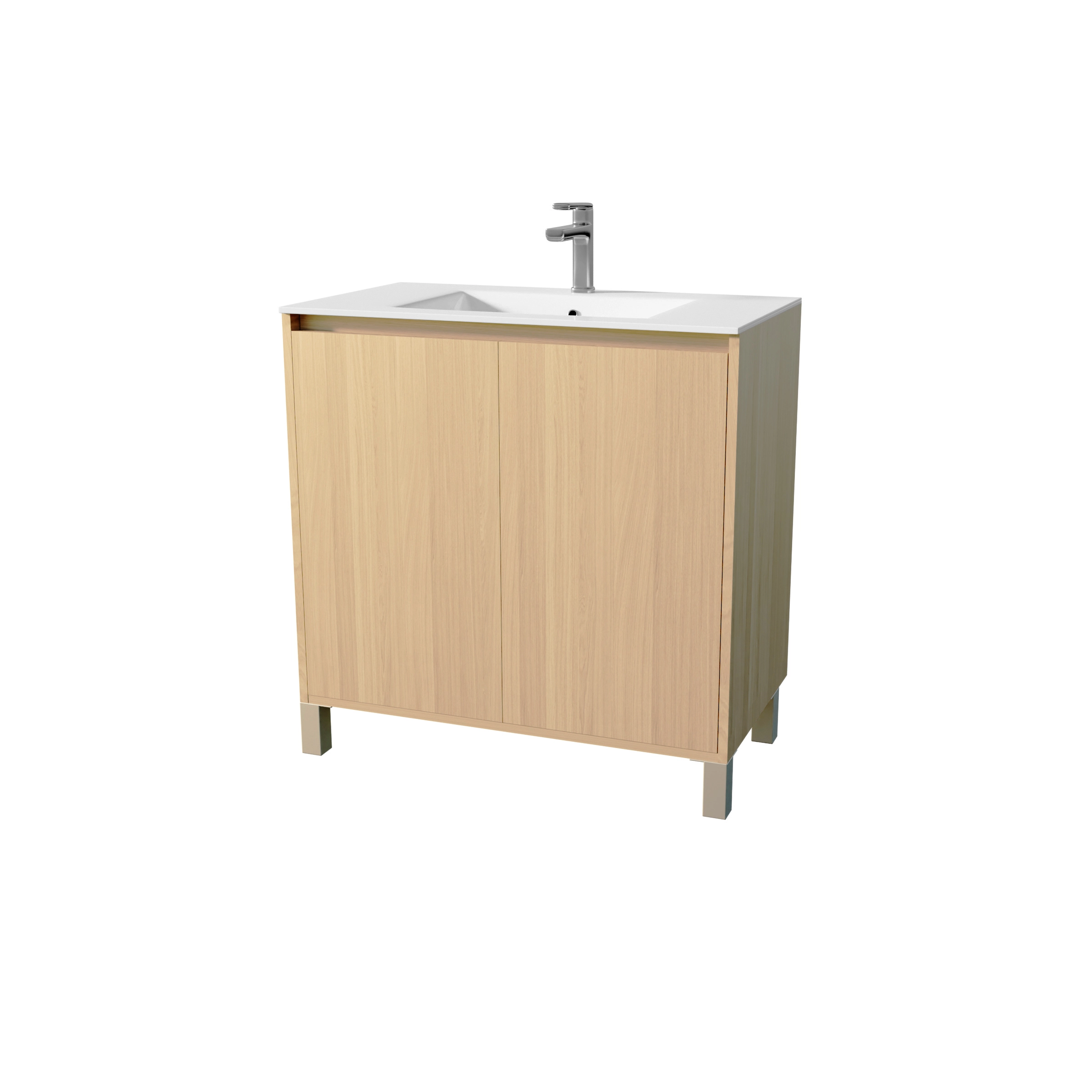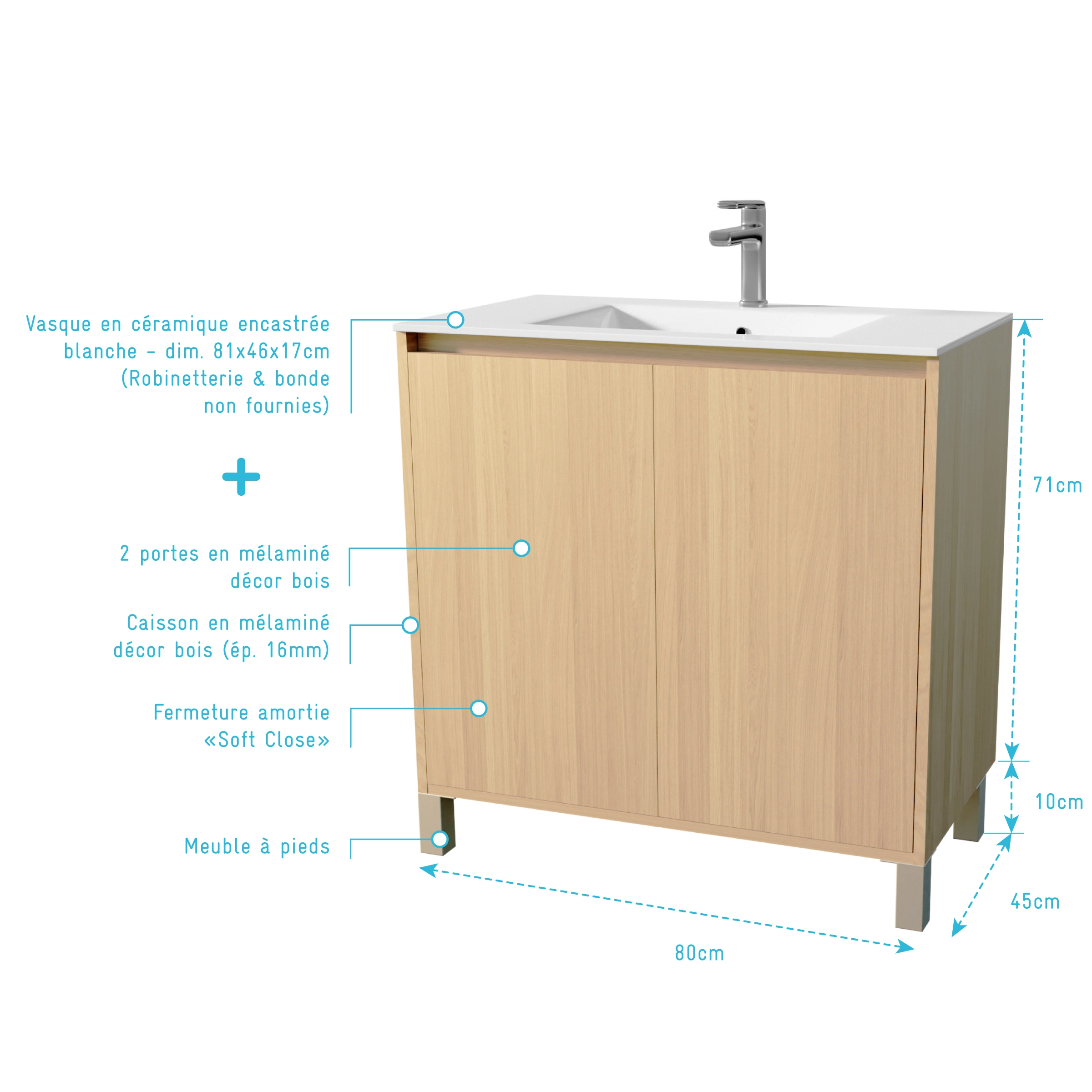 Pack Meuble Salle de Bains 80 cm Chêne Clair, 2 portes avec Vasque Céramique – XENOS