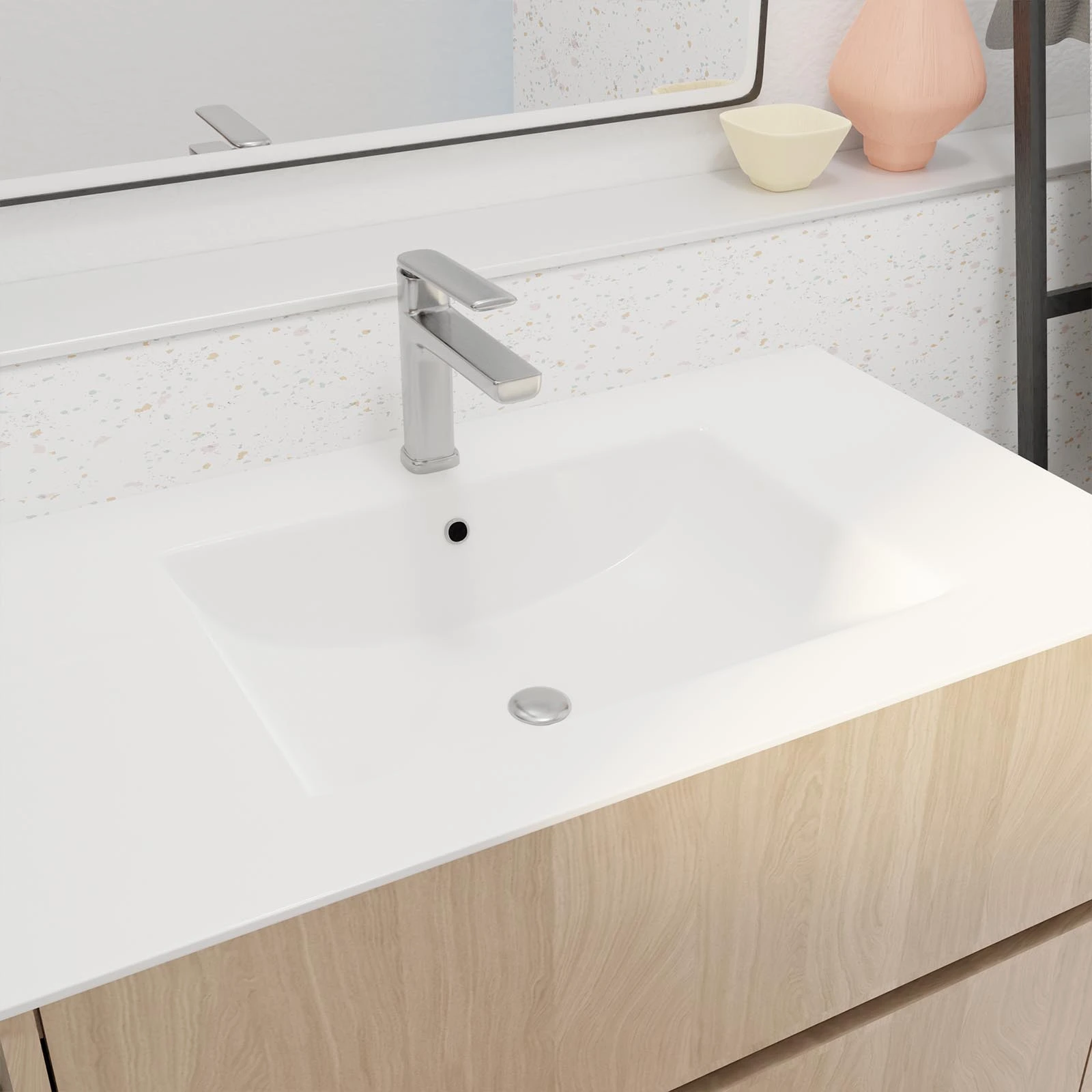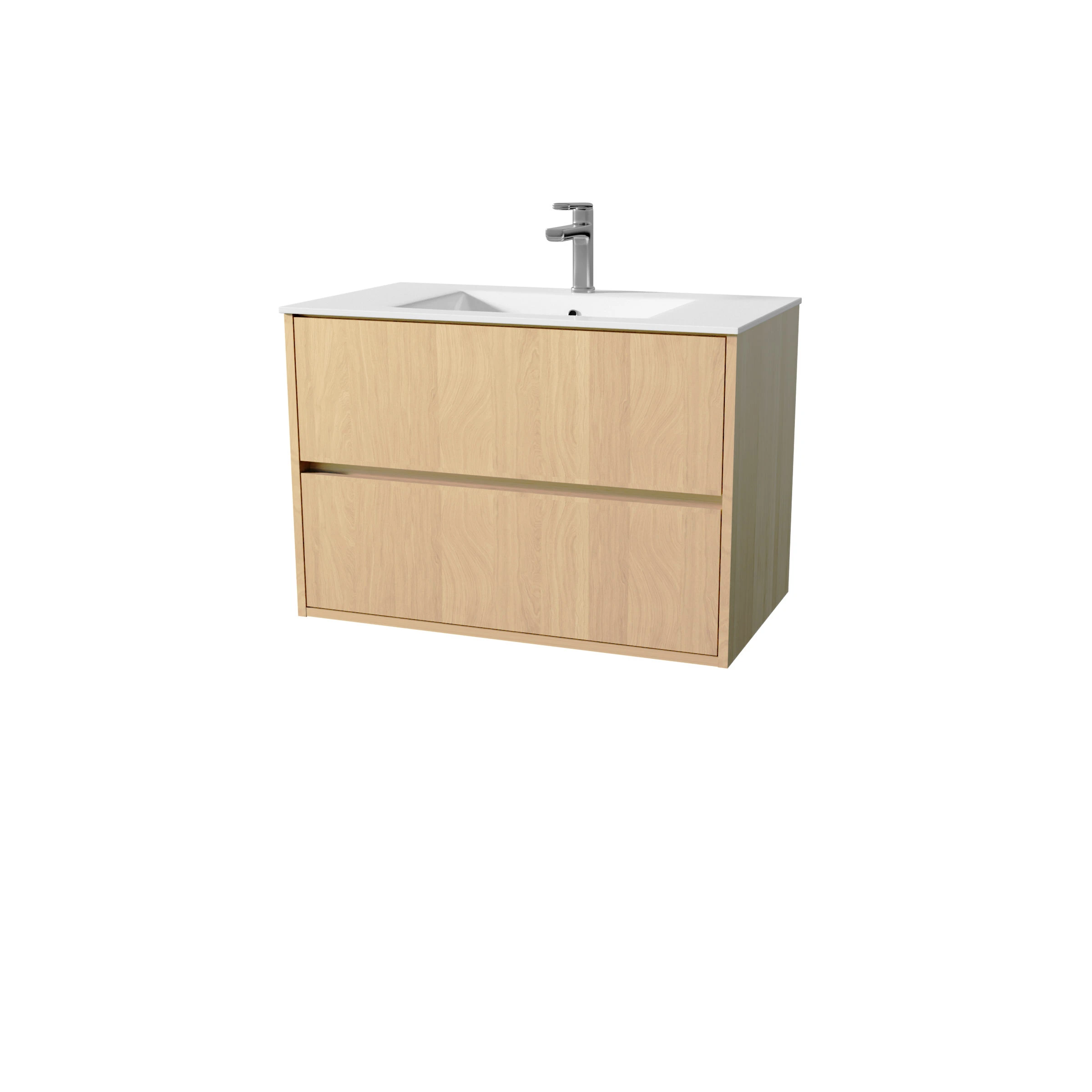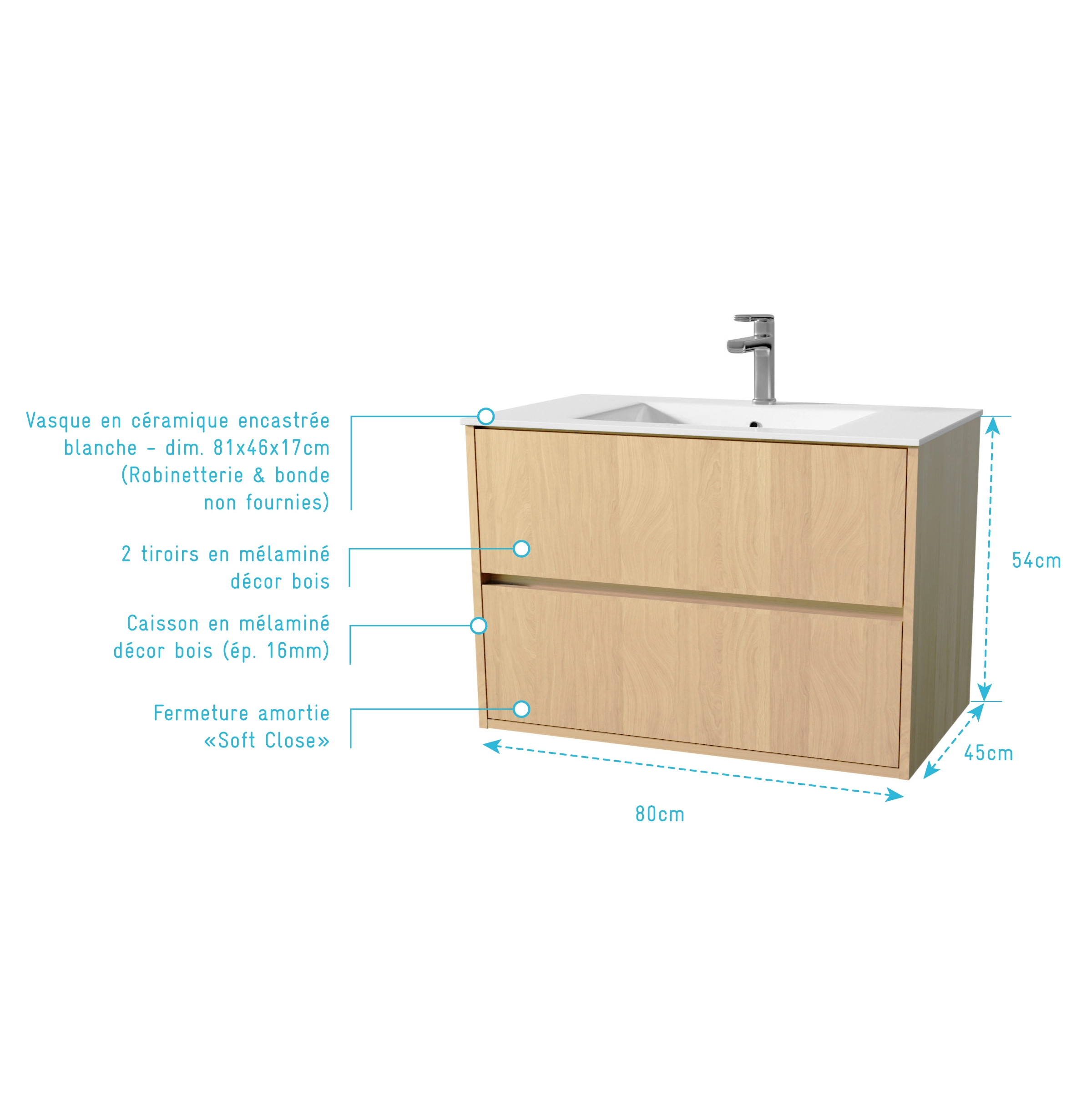 0 avis ONE Meuble de salle de bains 80cm Chêne Clair 2 tiroirs avec Vasque céramique blanche - ONE