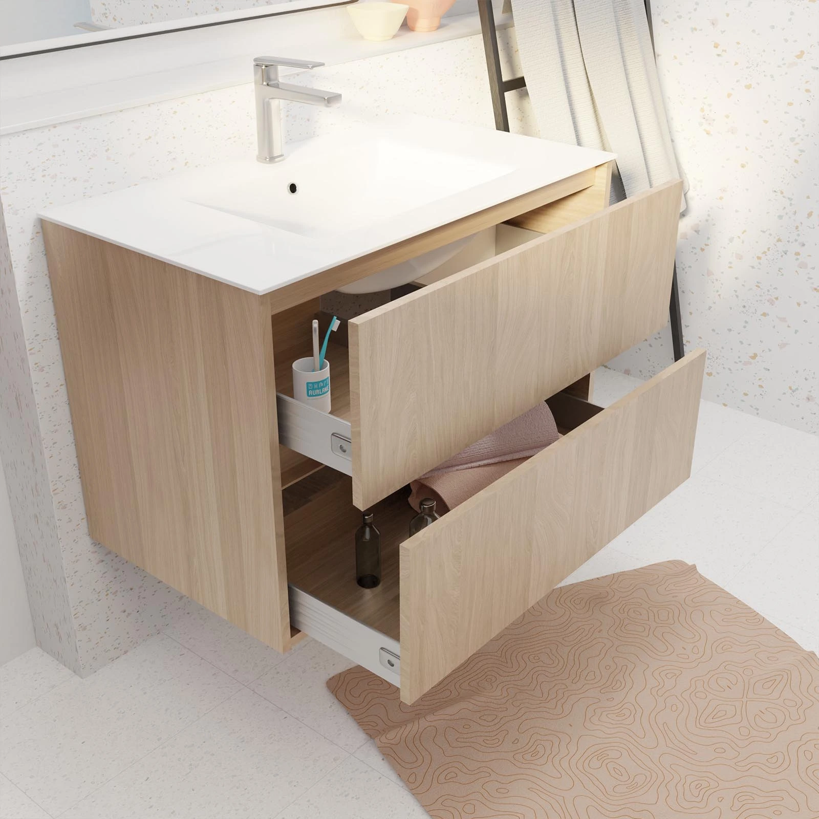 0 avis JOTA Meuble de salle de bains 80cm 2 tiroirs Chêne Clair - Vasque céramique blanche - JOTA