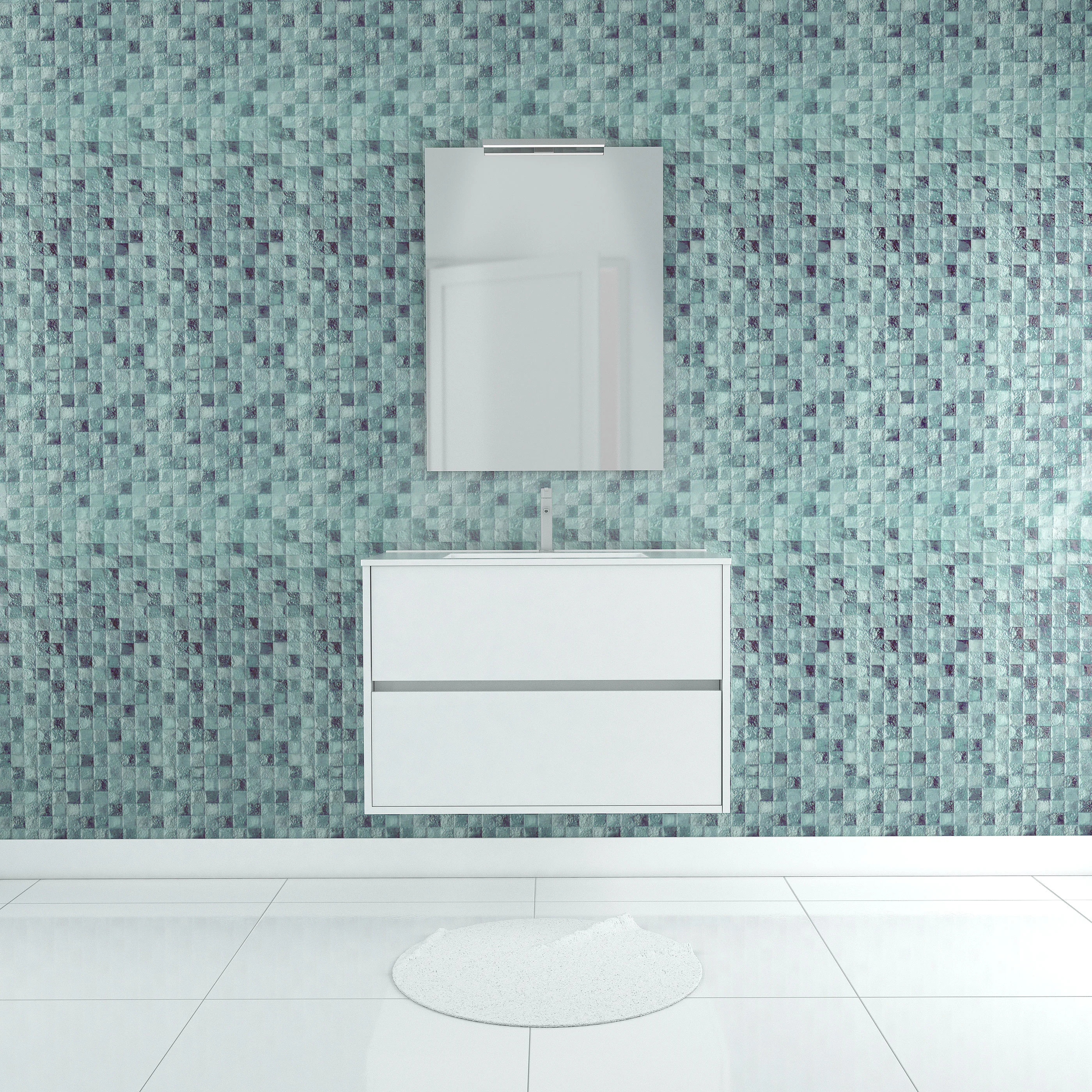 Pack Meuble Salle de Bains 80cm Blanc 2 Tiroirs, Vasque, Miroir 60x80 et réglette Led - XENOS