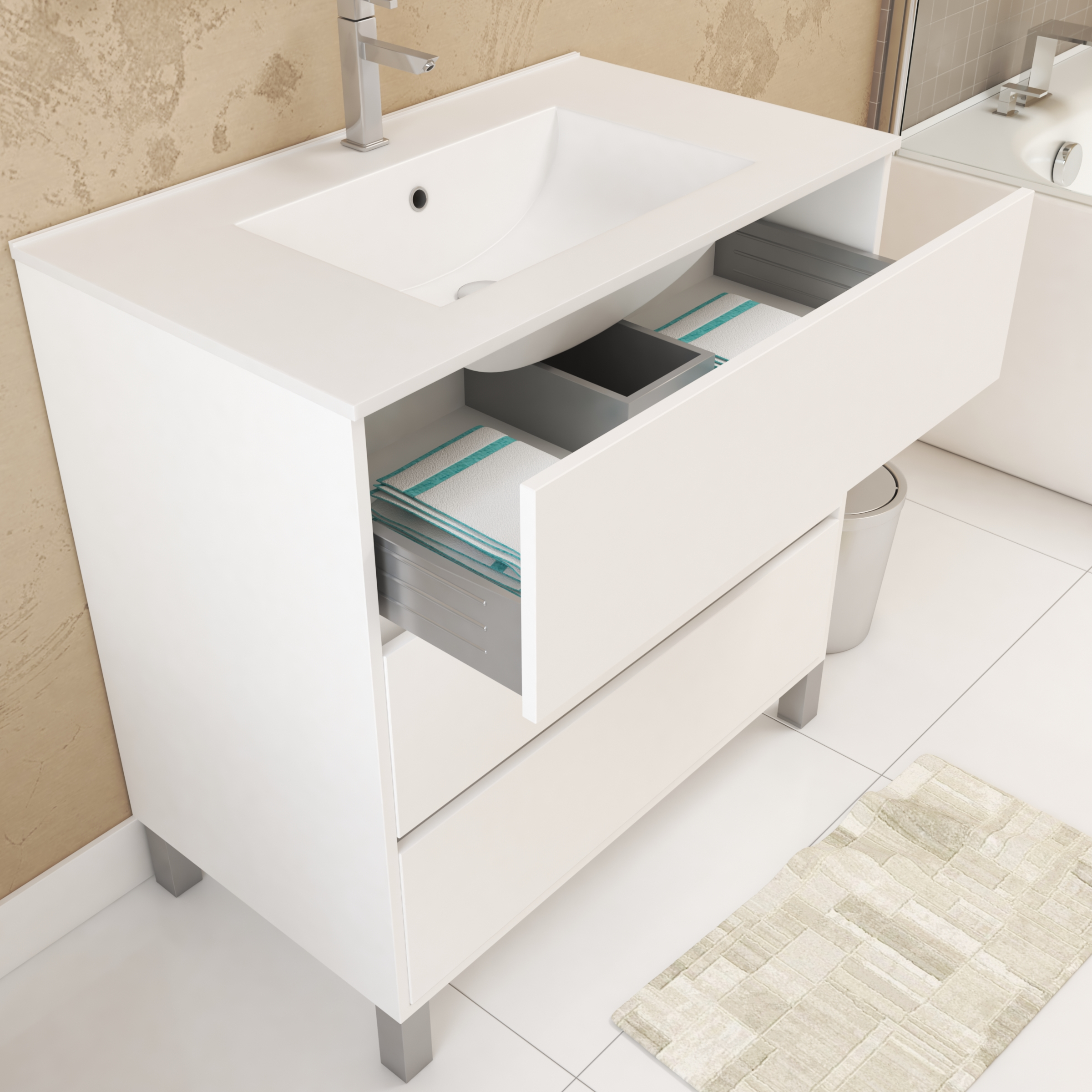 - 3 tiroirs à fermeture progressive (soft-close)