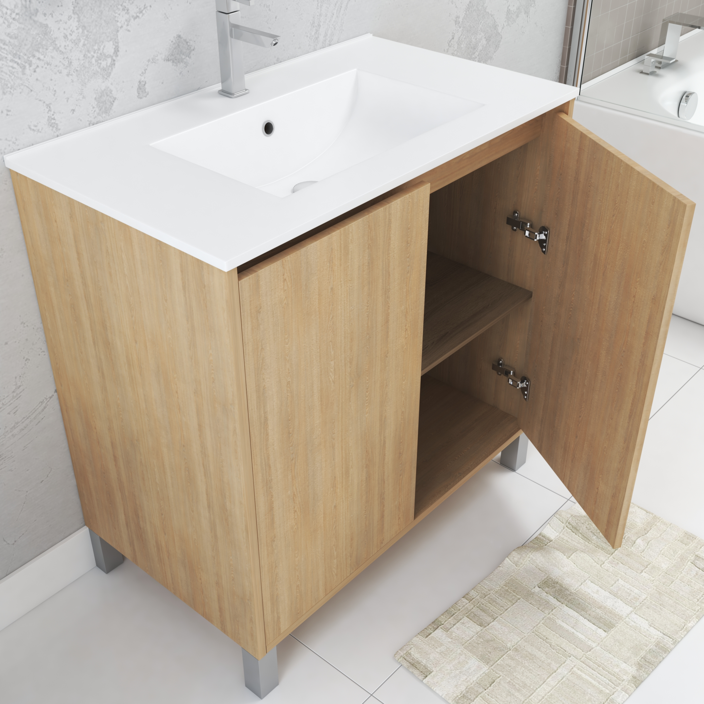 0 avis JOTA Meuble de salle de bains 80cm 3 tiroirs Chêne Clair - Vasque céramique blanche - JOTA