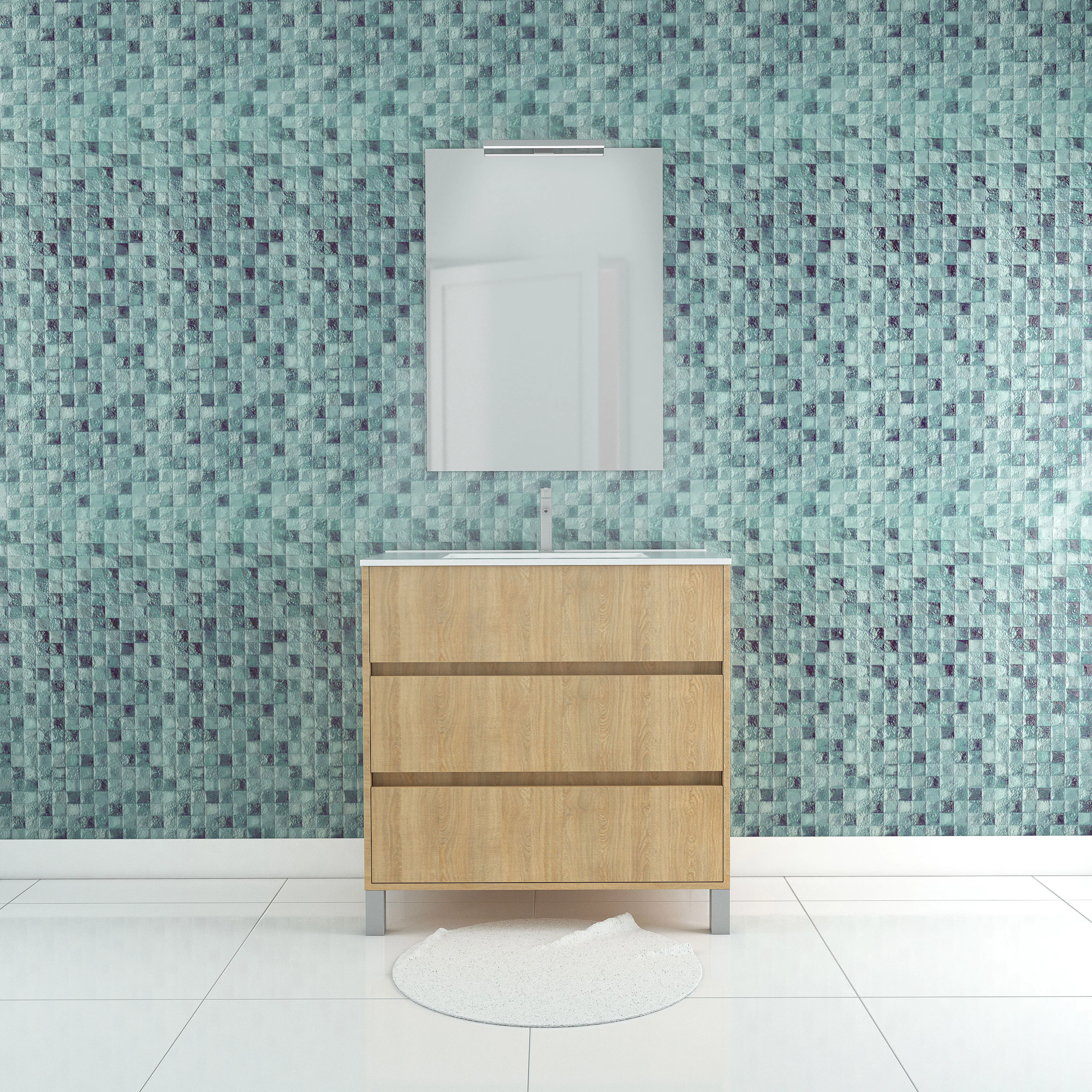 Pack Meuble Salle de Bains 80cm Chêne Clair 3 Tiroirs, Vasque, Miroir 60×80 et réglette Led – XENOS