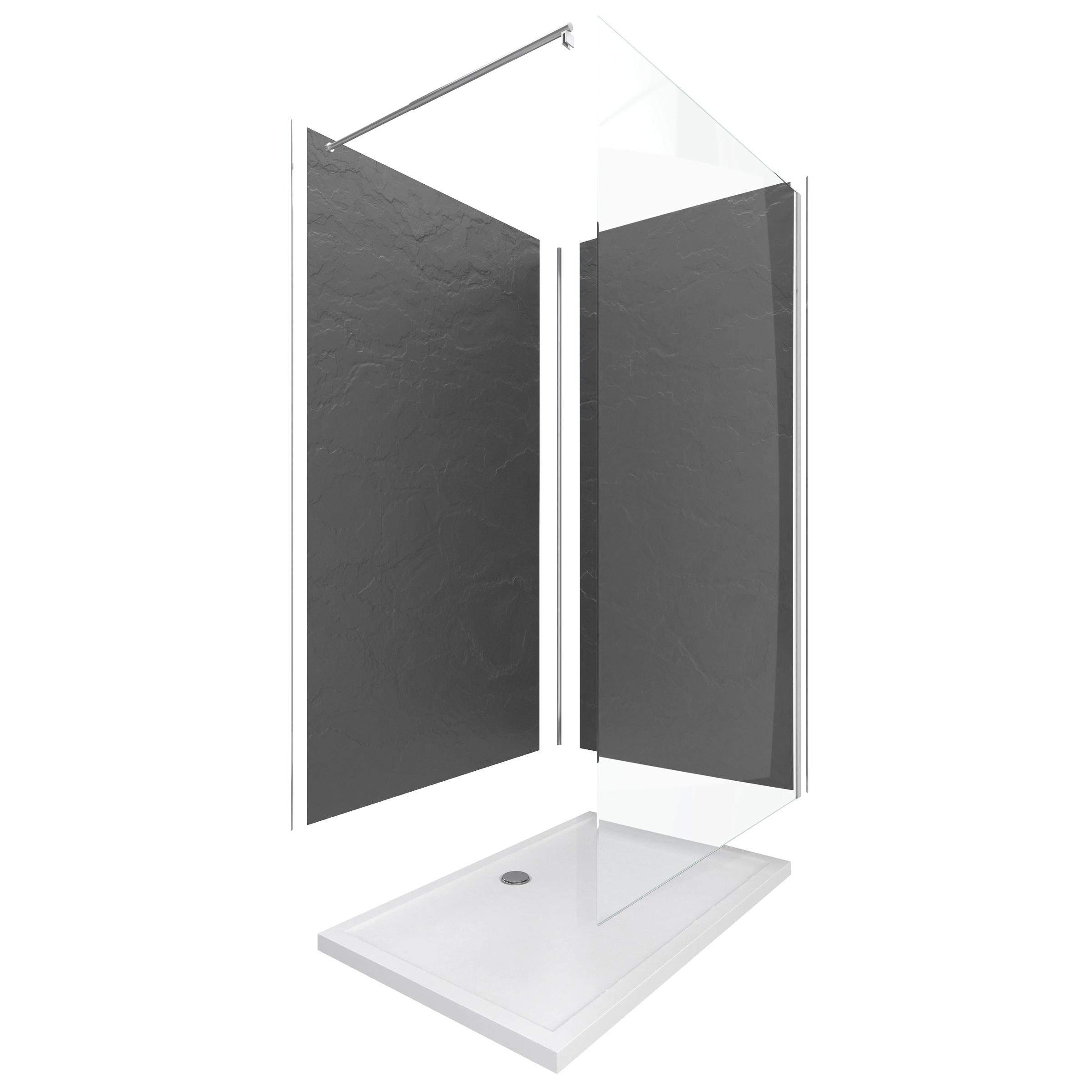 Ensemble complet douche à l'Italiennne avec Receveur 90x90 + Paroi Miroir + Panneaux muraux Ardoise