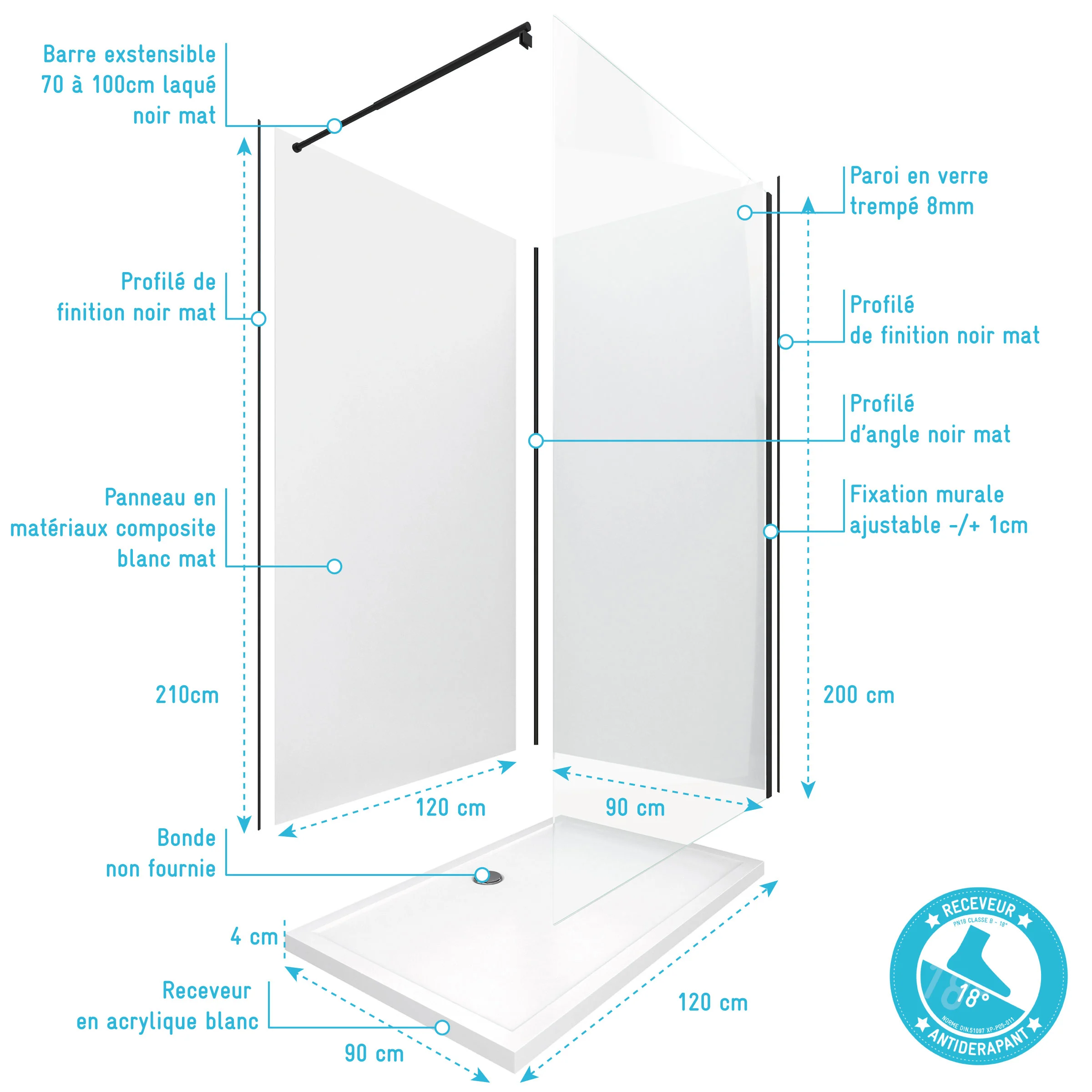 - Épaisseur receveur : 4 cm