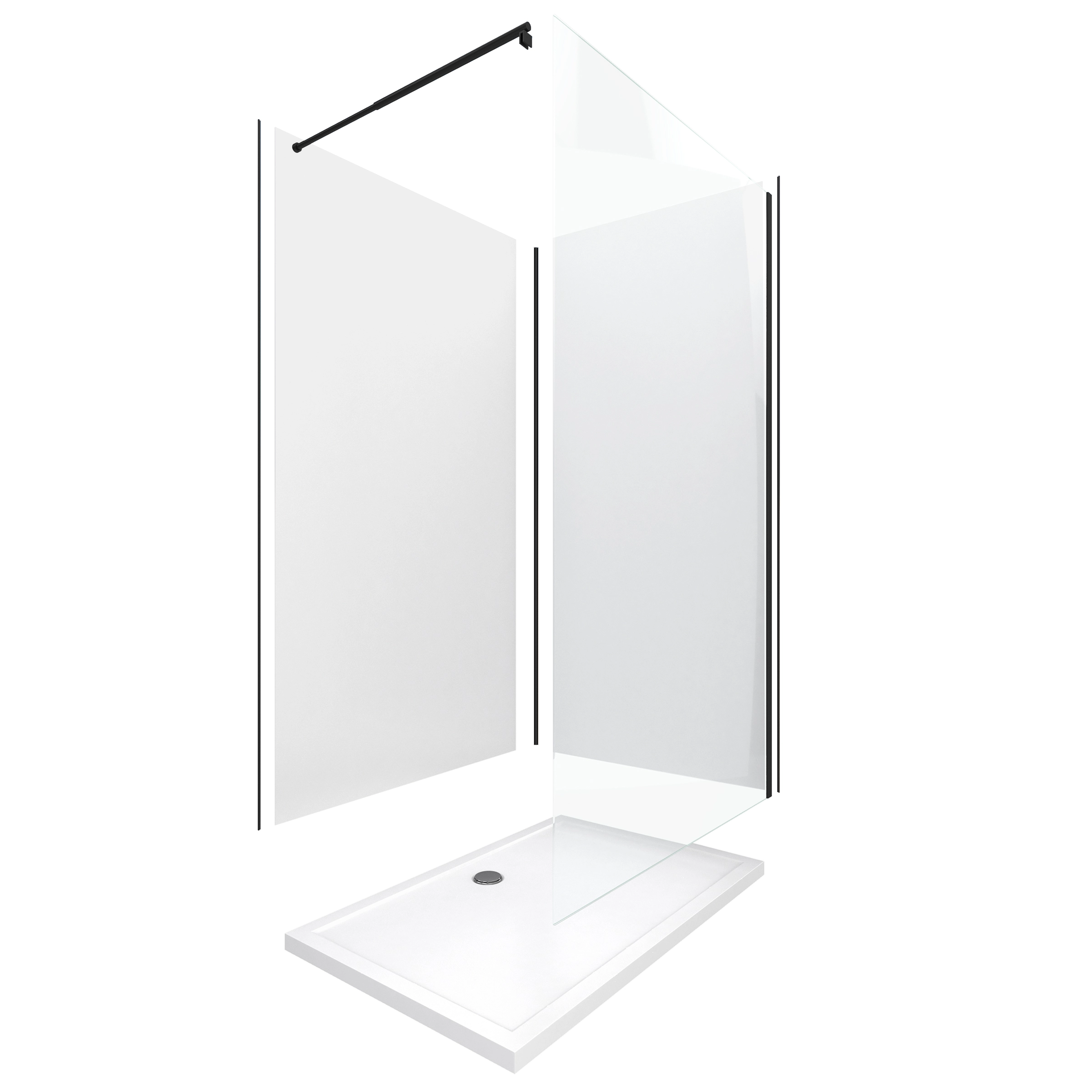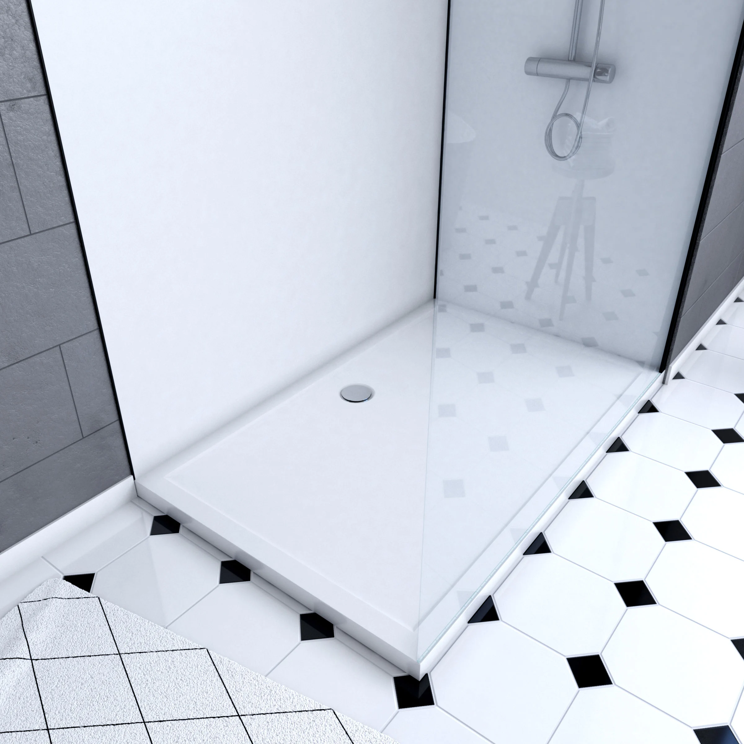 Pack douche à l’Italienne 90×120 – Kit Panneaux muraux Blanc/Noir + receveur + Paroi transparente