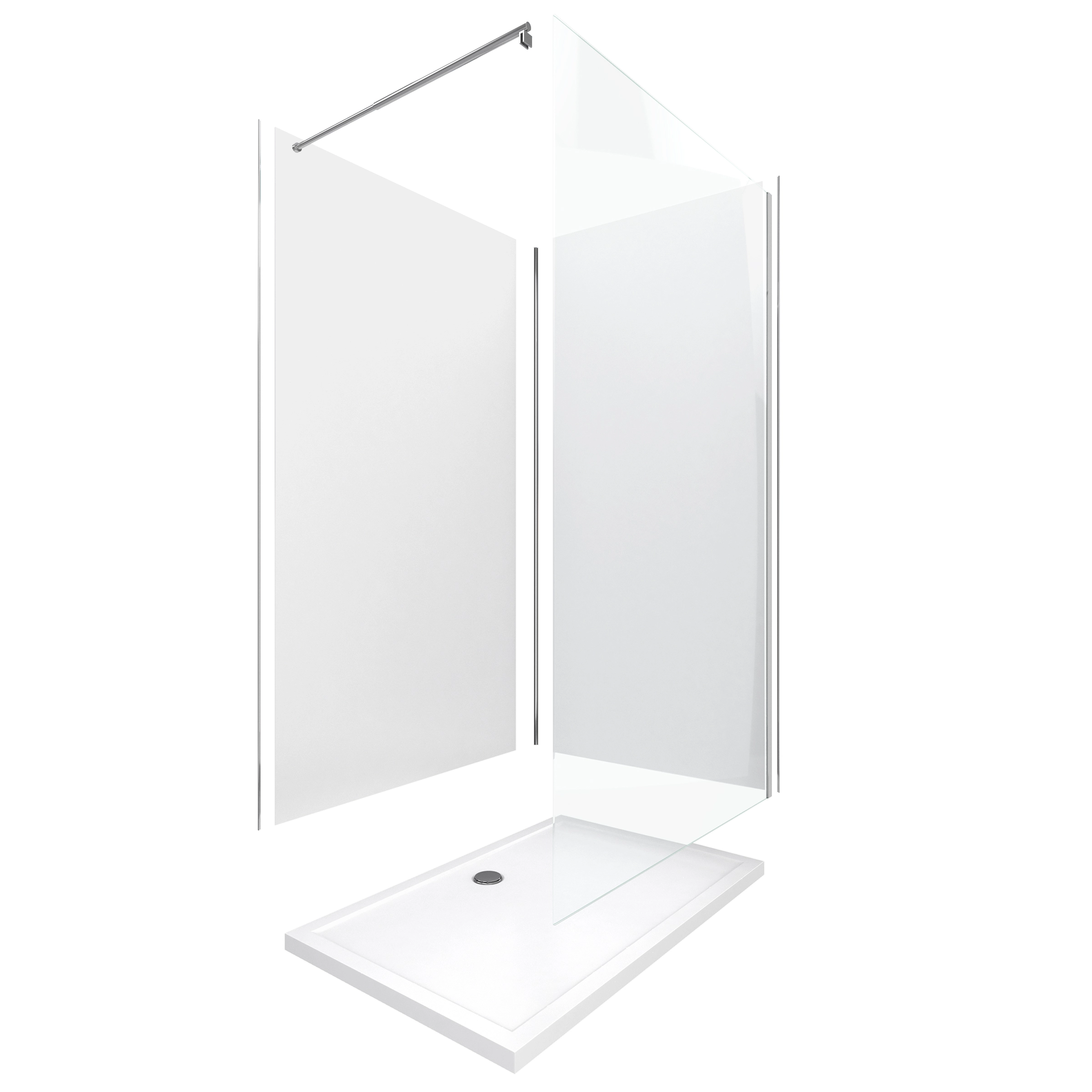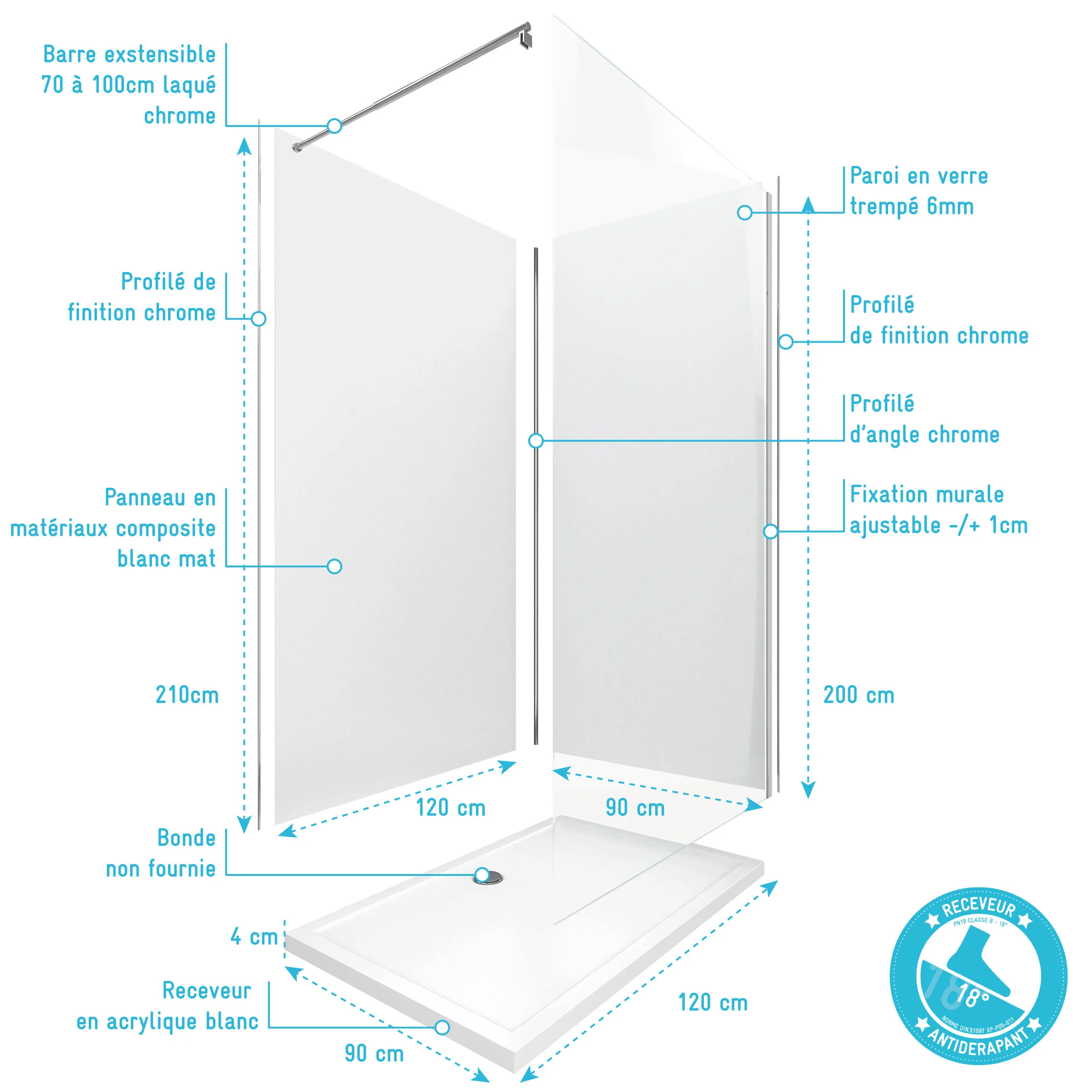 Pack douche à l’Italienne 90×120 – Kit Panneaux muraux Blanc/Chrome + receveur + Paroi 6 mm