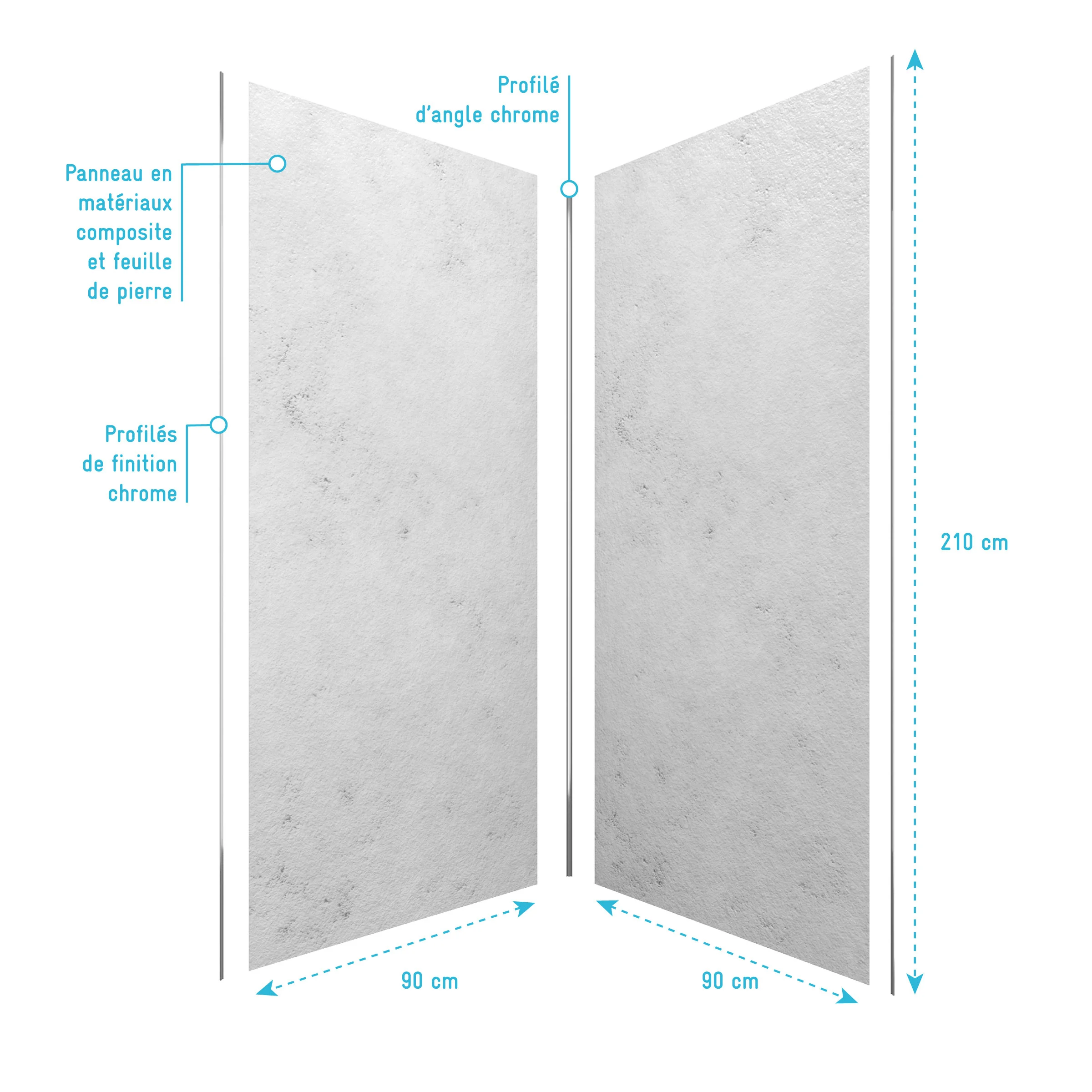 0 avis STONE'IT Pack de 2 Panneaux Muraux Pierre Venus 90+120x210 cm avec Profilés ANODISE BRILLANT - STONE'IT