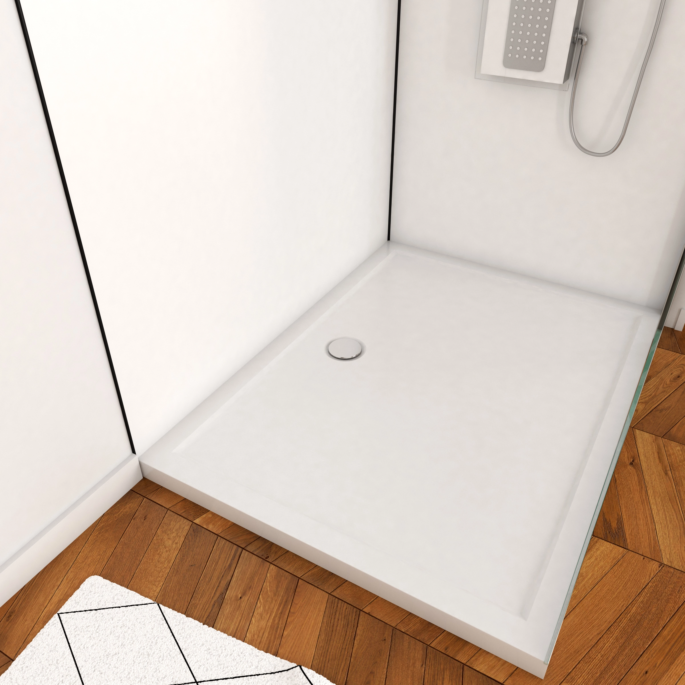 - 1 Receveur en acrylique blanc à poser ou à encastrer au sol (120×90)