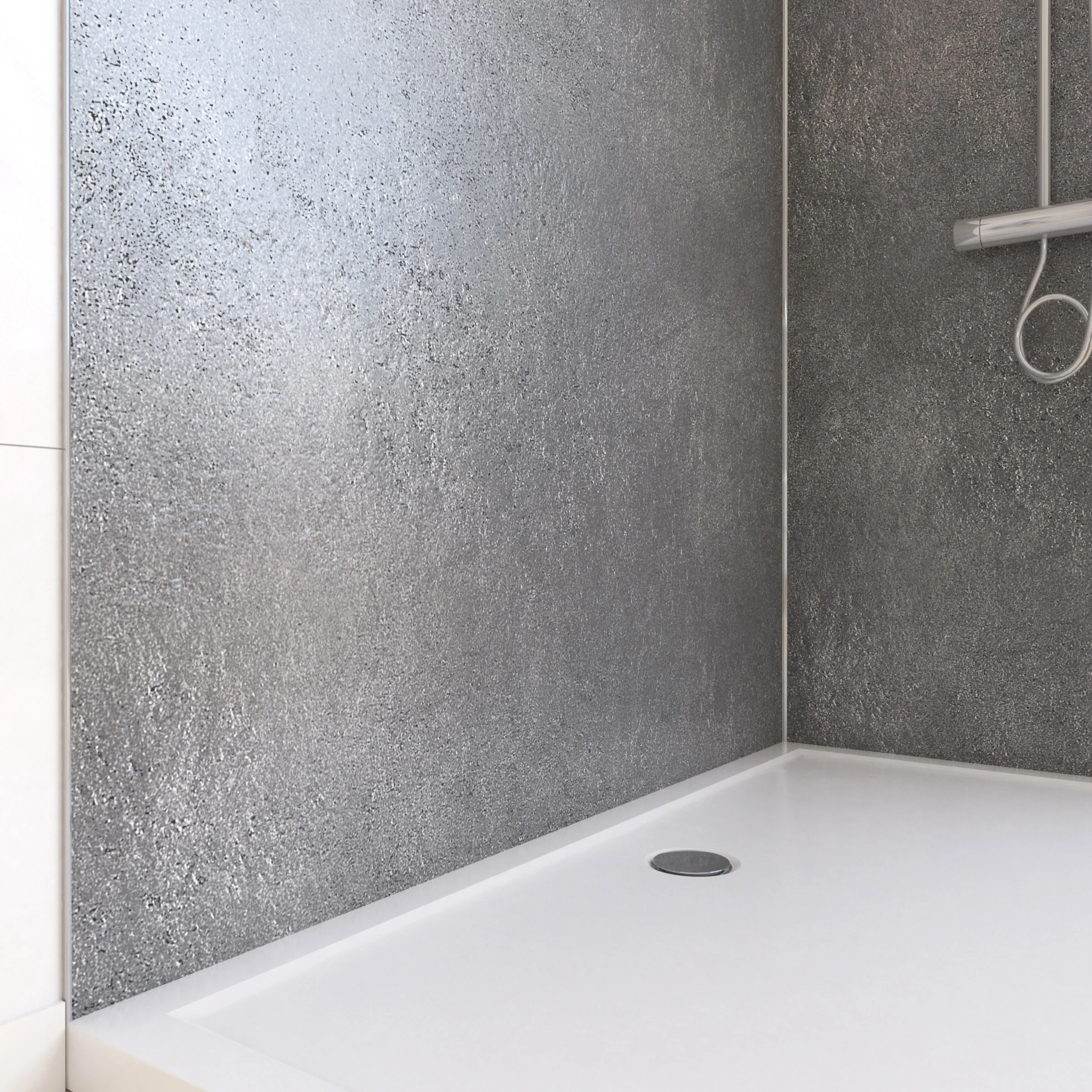 Ce pack de deux panneaux muraux Silver Grey s’accompagne d’un profilé d’angle et de deux profilés de finition Anodisé Brillant.