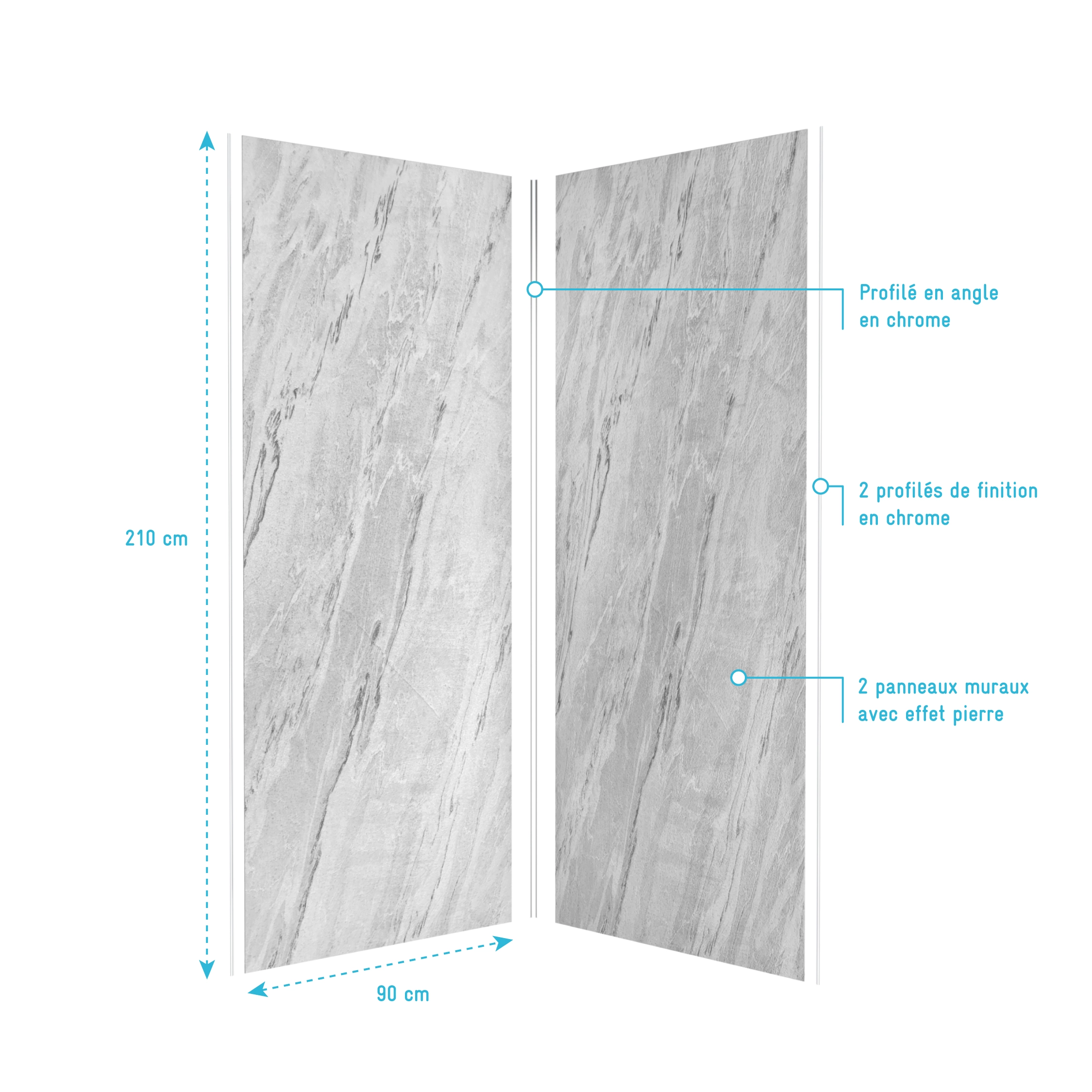 Pack de 2 Panneaux Muraux Pierre Artic Storm 90+90×210 cm avec Profilés ANODISE BRILLANT – STONE’IT