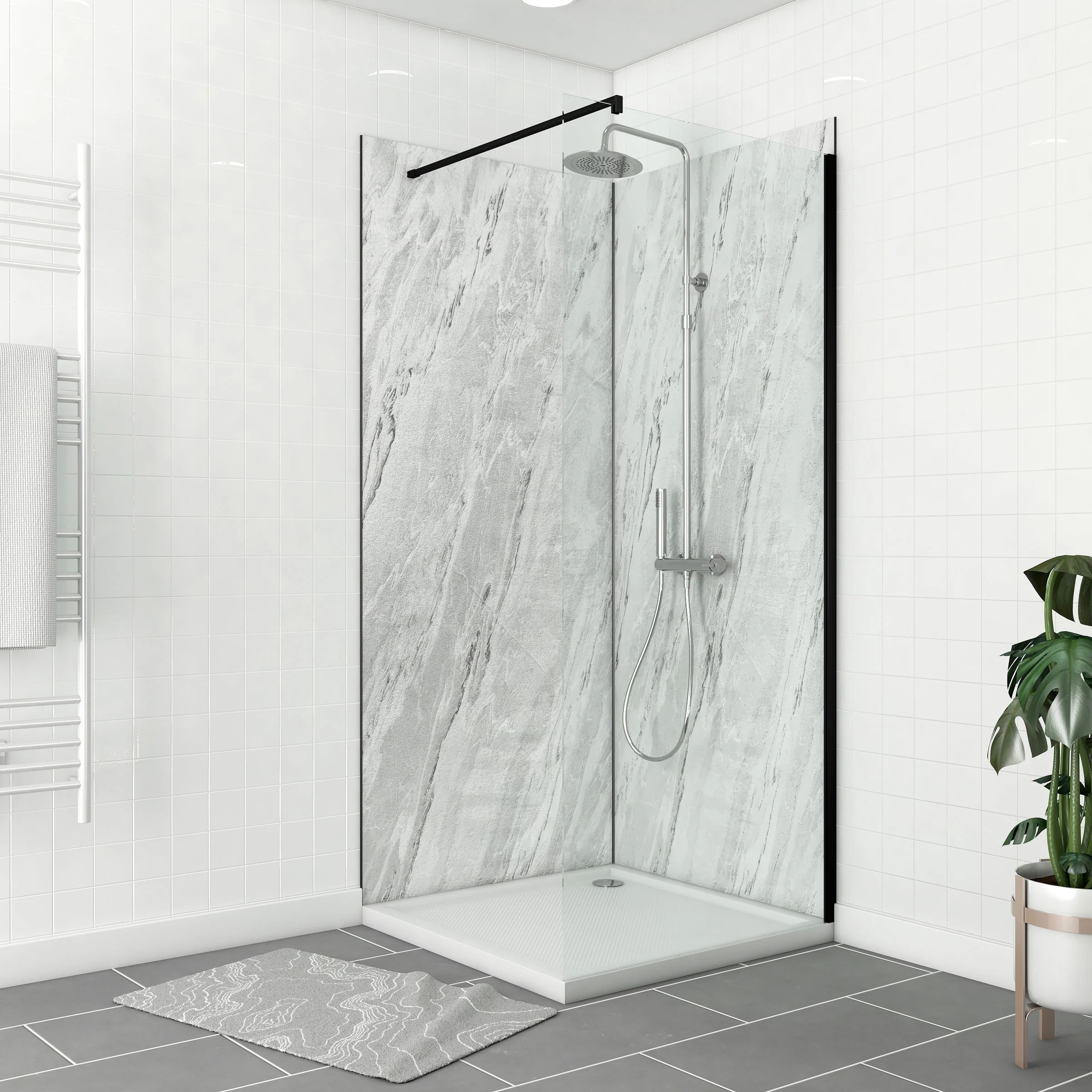 Pack de 2 Panneaux Muraux Pierre Artic Storm 90+90×210 cm avec Profilés NOIR MAT – STONE’IT