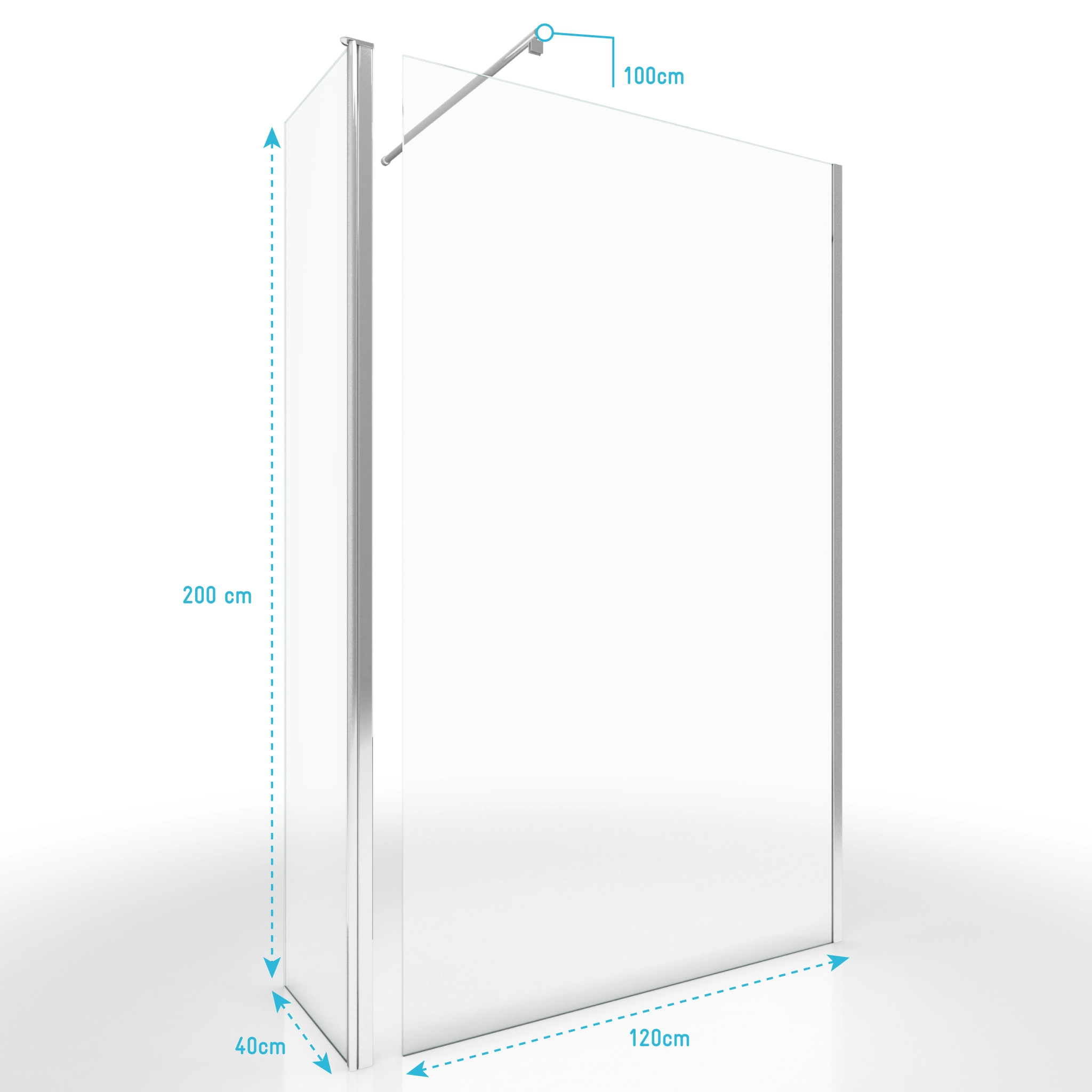 Paroi de douche a l’italienne – 120x200cm VERRE TRANSPARENT 6mm + Barre de fixation recoupable