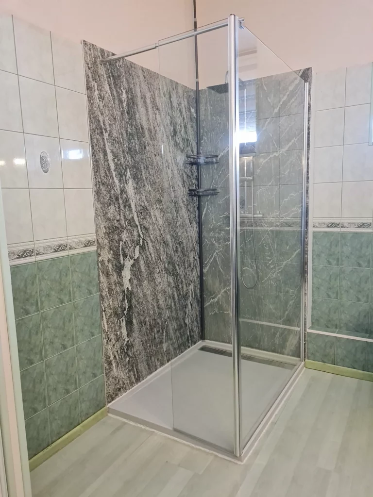 1 avis pour Pack paroi de douche et Volet pivotant 120+40×200 cm – Verre transparent + barre de fixation chrome