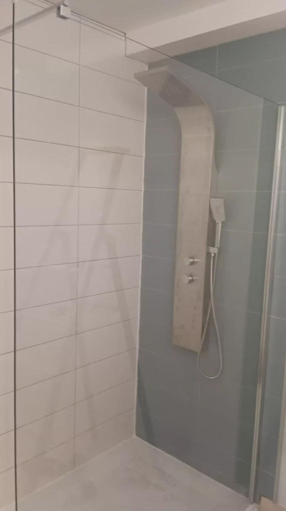 Correspond à ce que j’attendais. Surprise toutefois de ne pas avoir un système de « jointage au sol » mais finalement cela évite de la moisissure et l’eau ne devrait pas passer dessous; surpris également de ne pas avoir de petite butée de maintien au sol en bout de vitre ? Le haut est-il suffisant? À voir avec l’usage.
