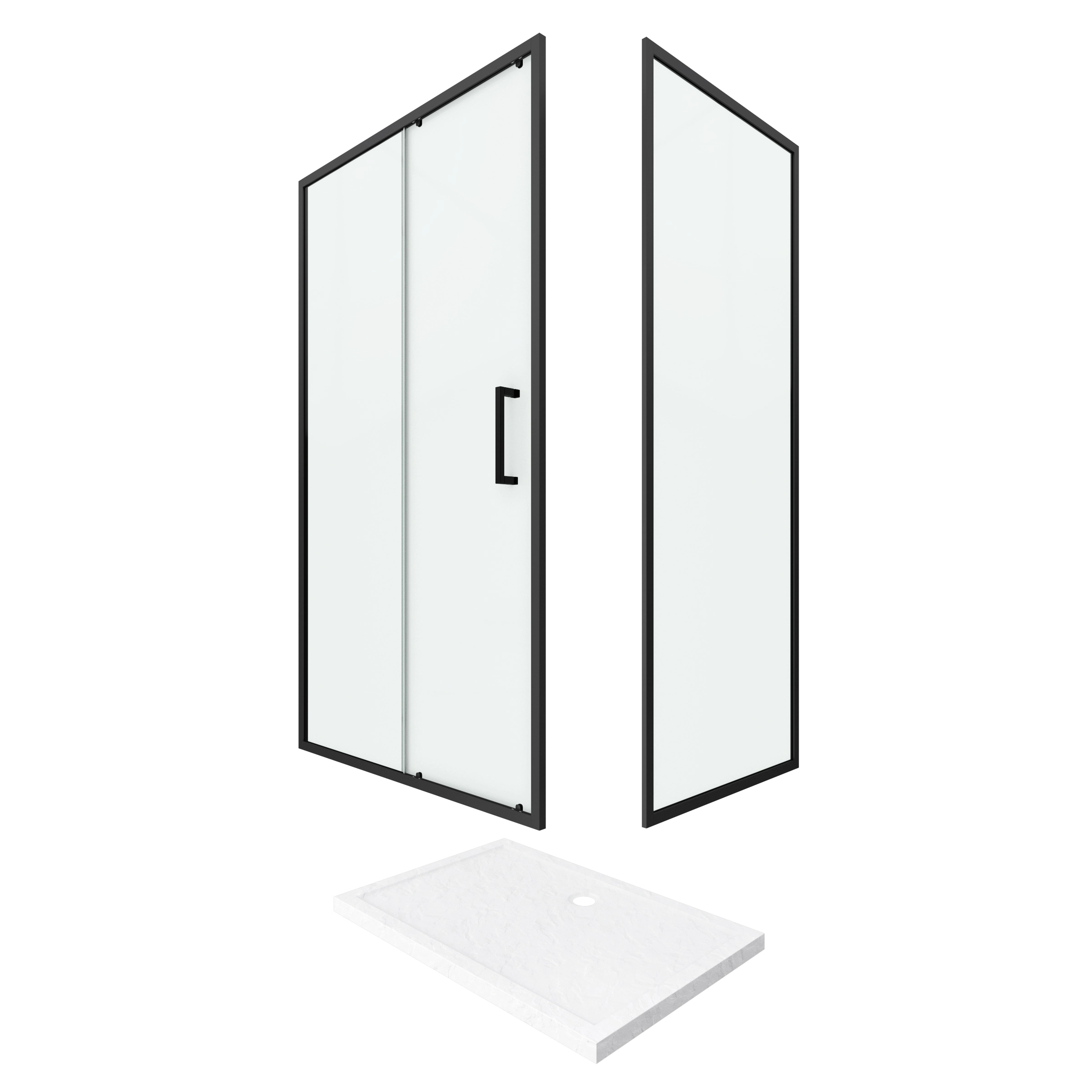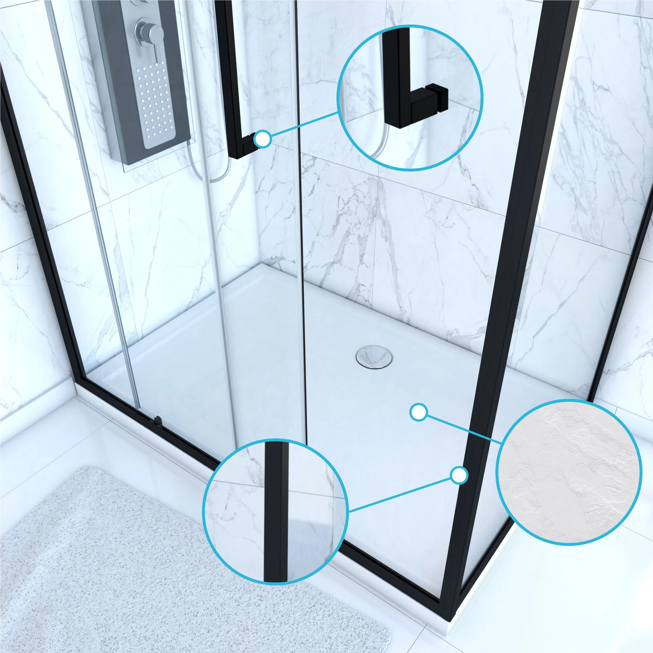 Porte Coulissante et Retour avec Sérigraphie Noire 120x80x200cm + Receveur en SMC Blanc Effet Pierre