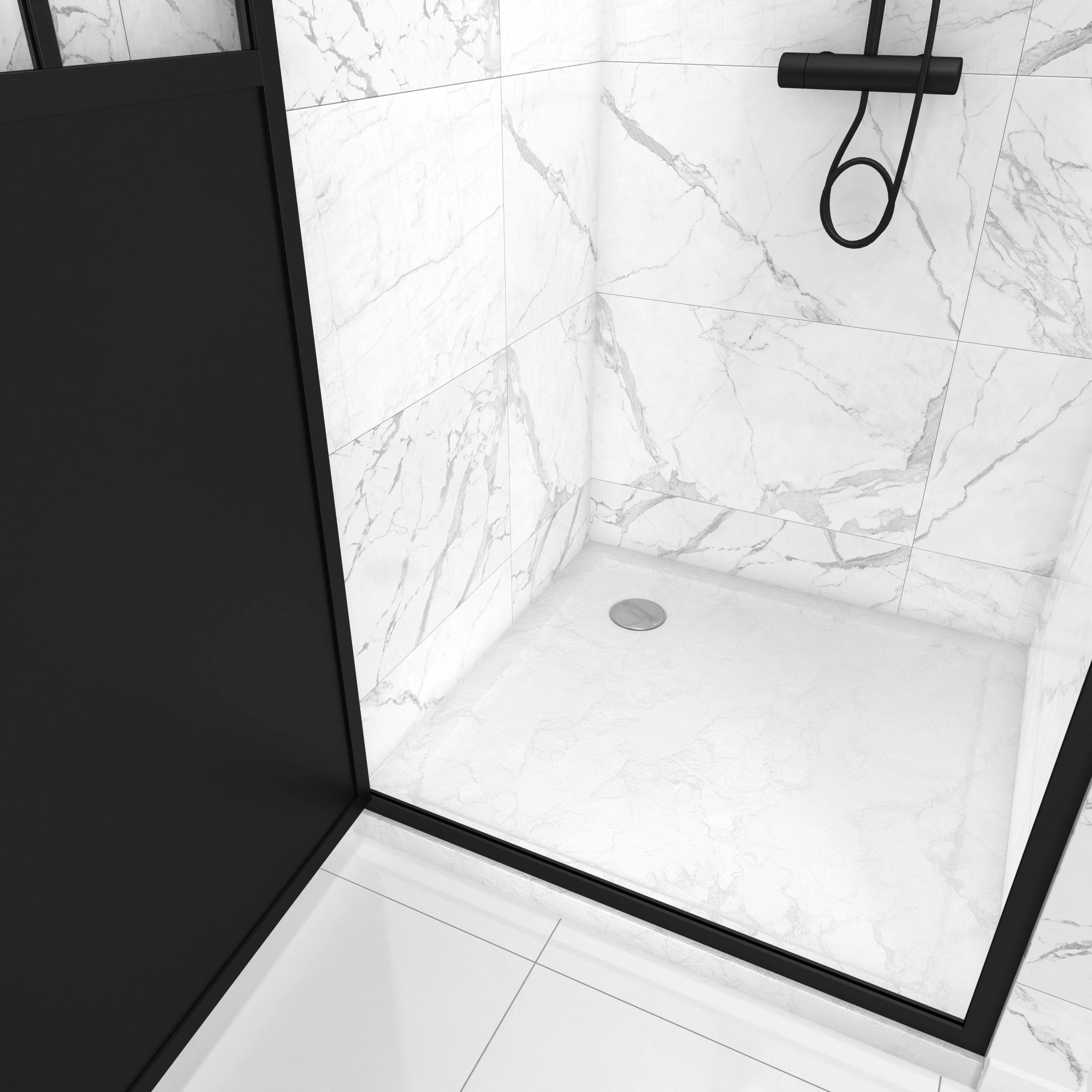 Pack comprenant une paroi à porte pivotante type atelier WORKSHOP 90 + receveur en acrylique renforcée blanc effet pierre MOON SQUARE 90