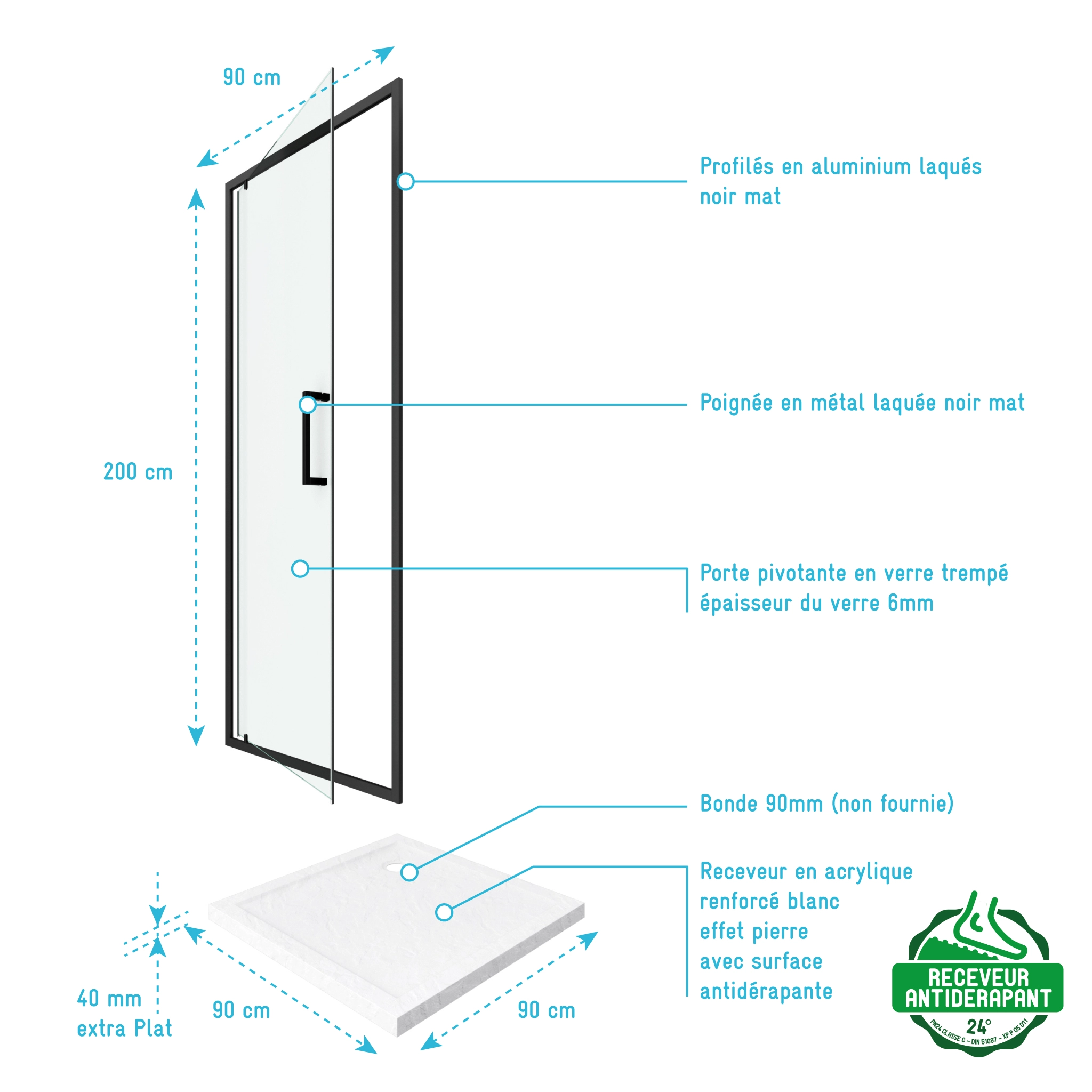 PACK PAROI PORTE DE DOUCHE PIVOTANTE+ RECEVEUR A POSER – 90×90 PIVOTANTE -CRUSH MOON PIVOTANTE 90×90
