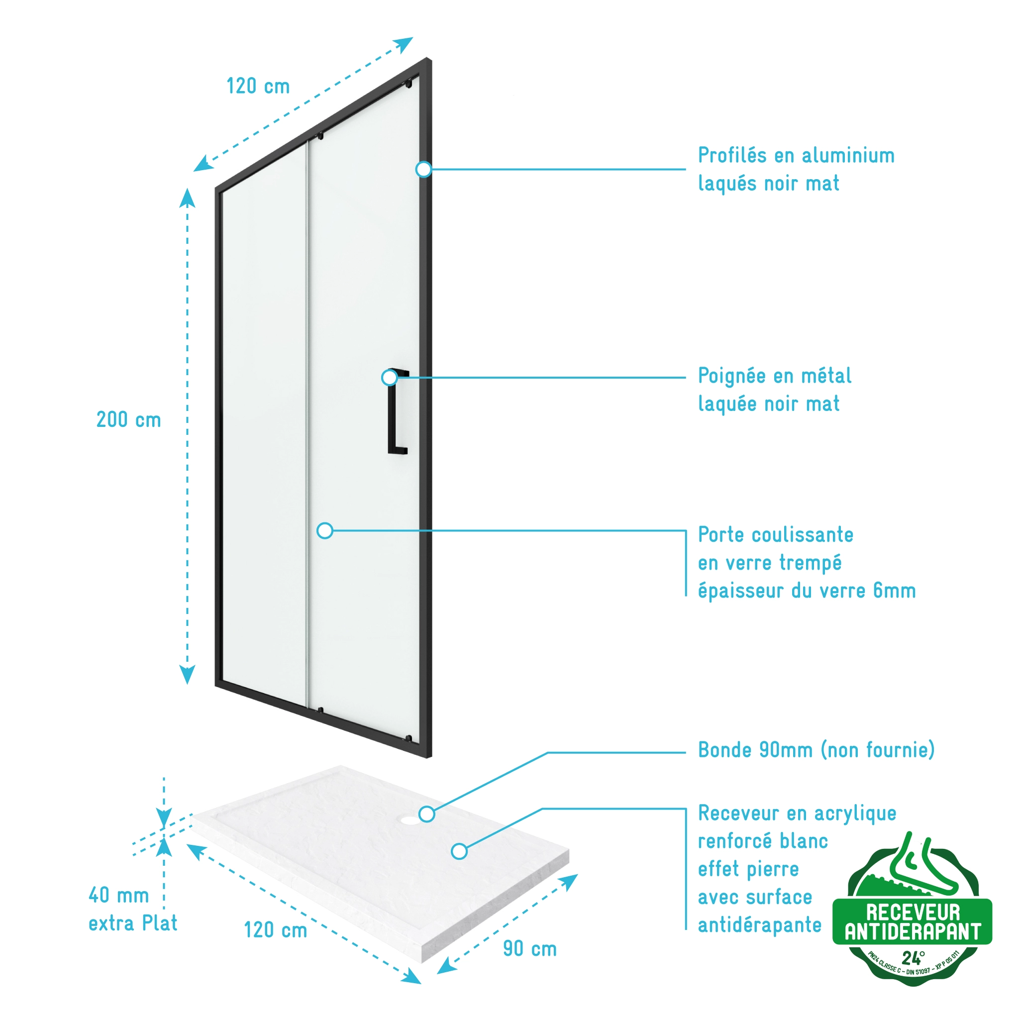 PACK PAROI PORTE DE DOUCHE + RECEVEUR A POSER – 120×90 COULISSANTE-CRUSH MOON 120×90