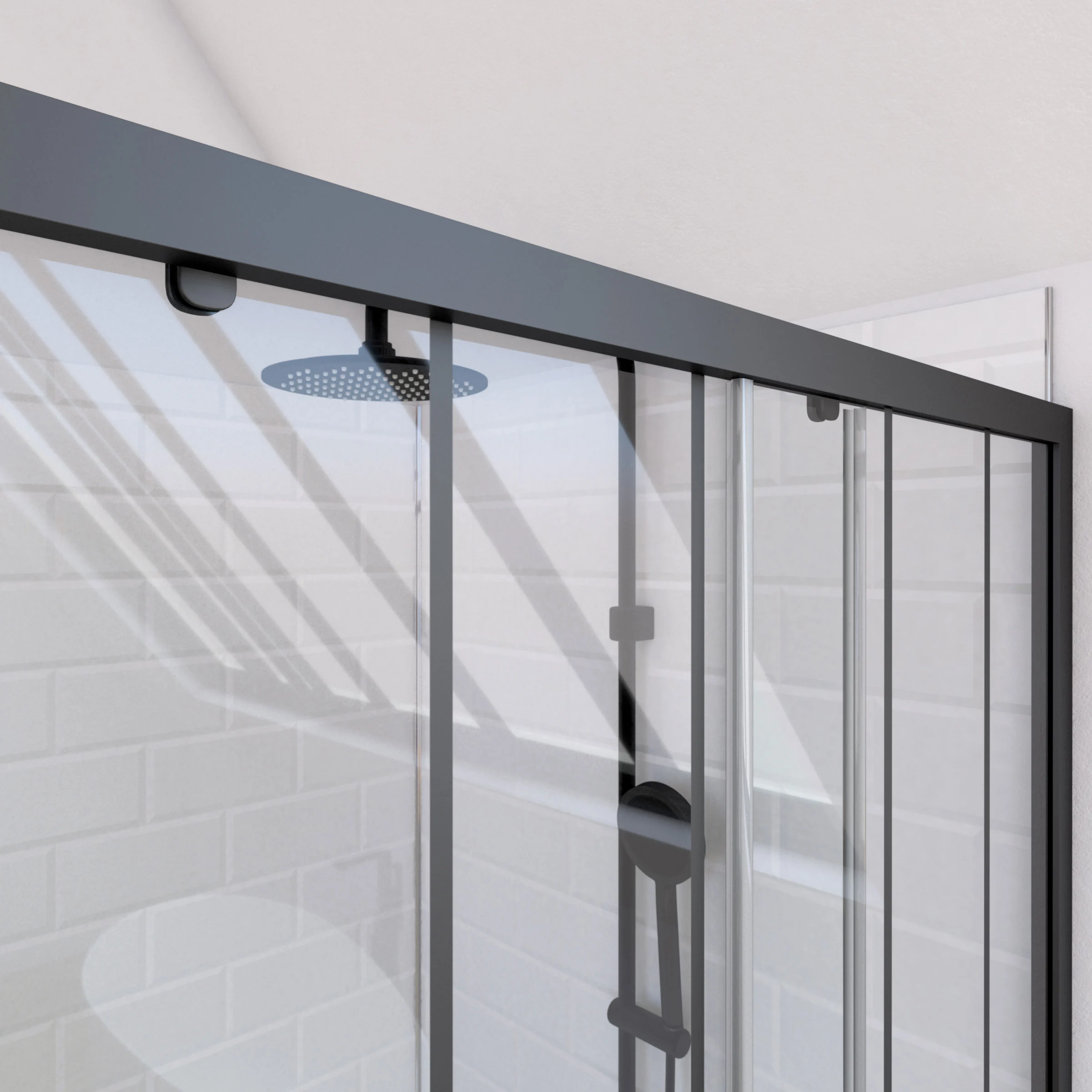 Porte de Douche Coulissante Extensible 140x185cm et Retour Fixe 90cm - Noir - BLACK SLIDE