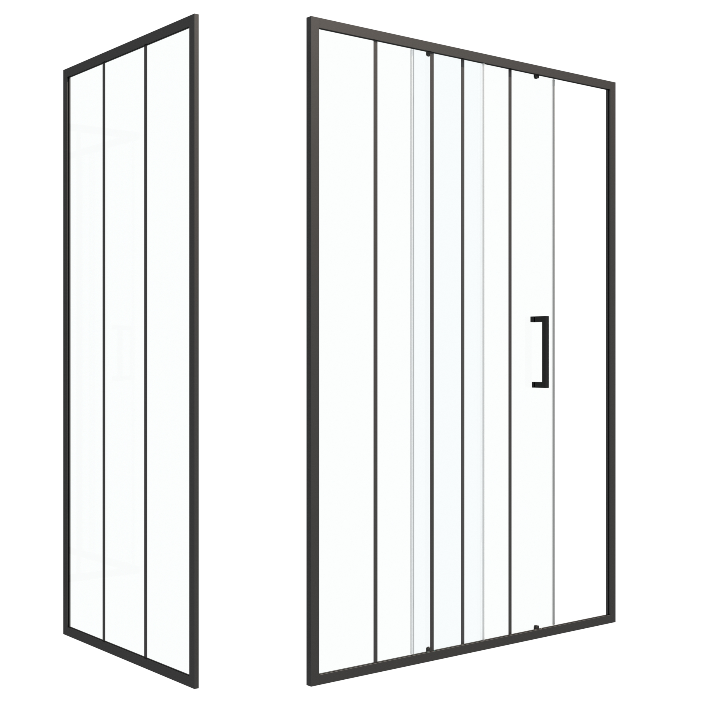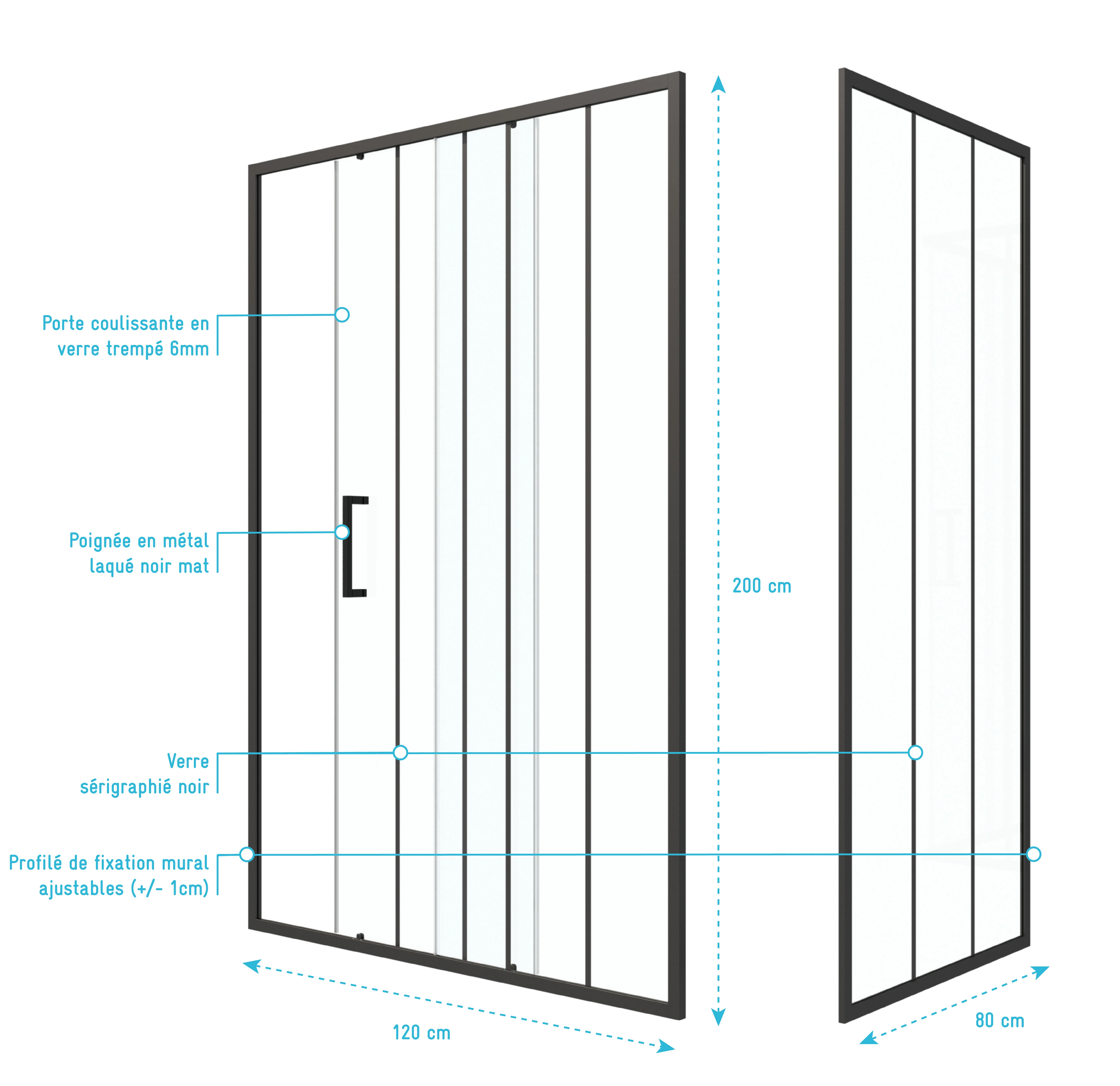 Porte de Douche Coulissante Extensible 120x185cm et Retour Fixe 80cm - Noir - BLACK SLIDE