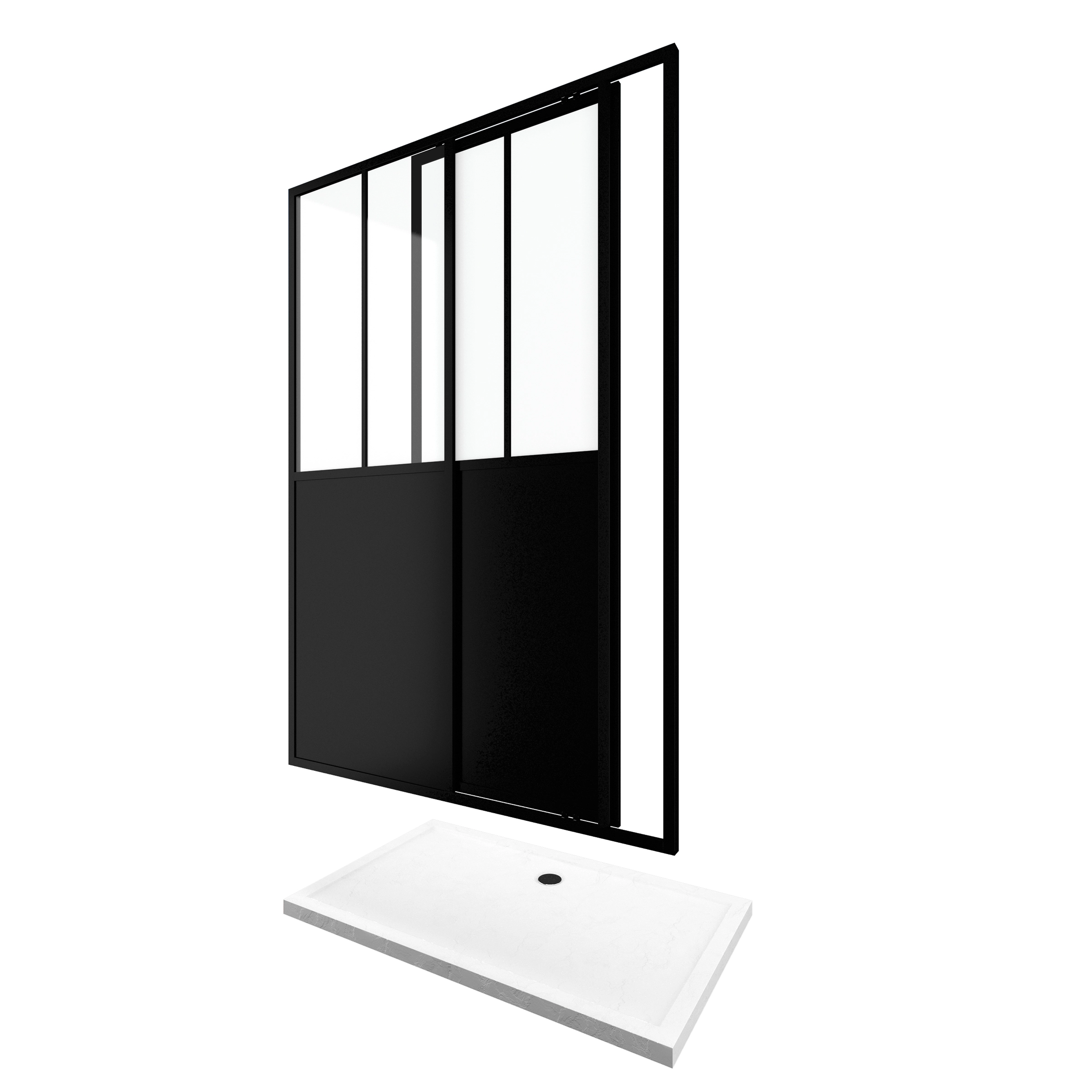 3 avis pour Pack Porte Coulissante Noire Mate Type ‘Atelier’ et Receveur Blanc Effet Pierre – 120x80x200 cm
