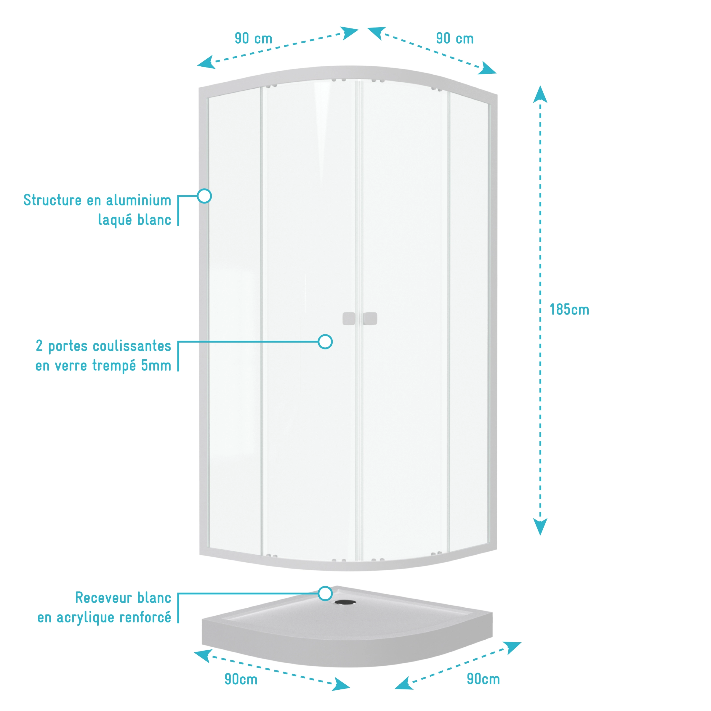 - Receveur : 90×90 cm