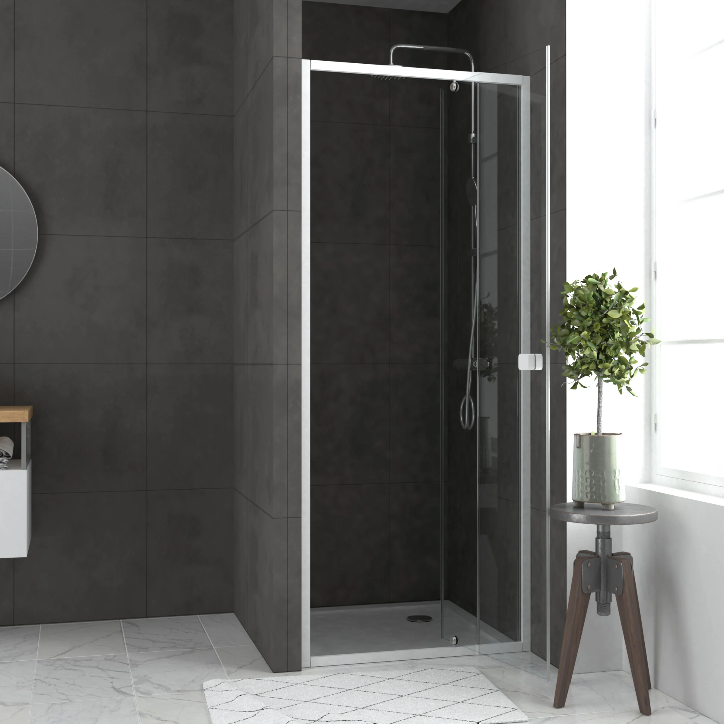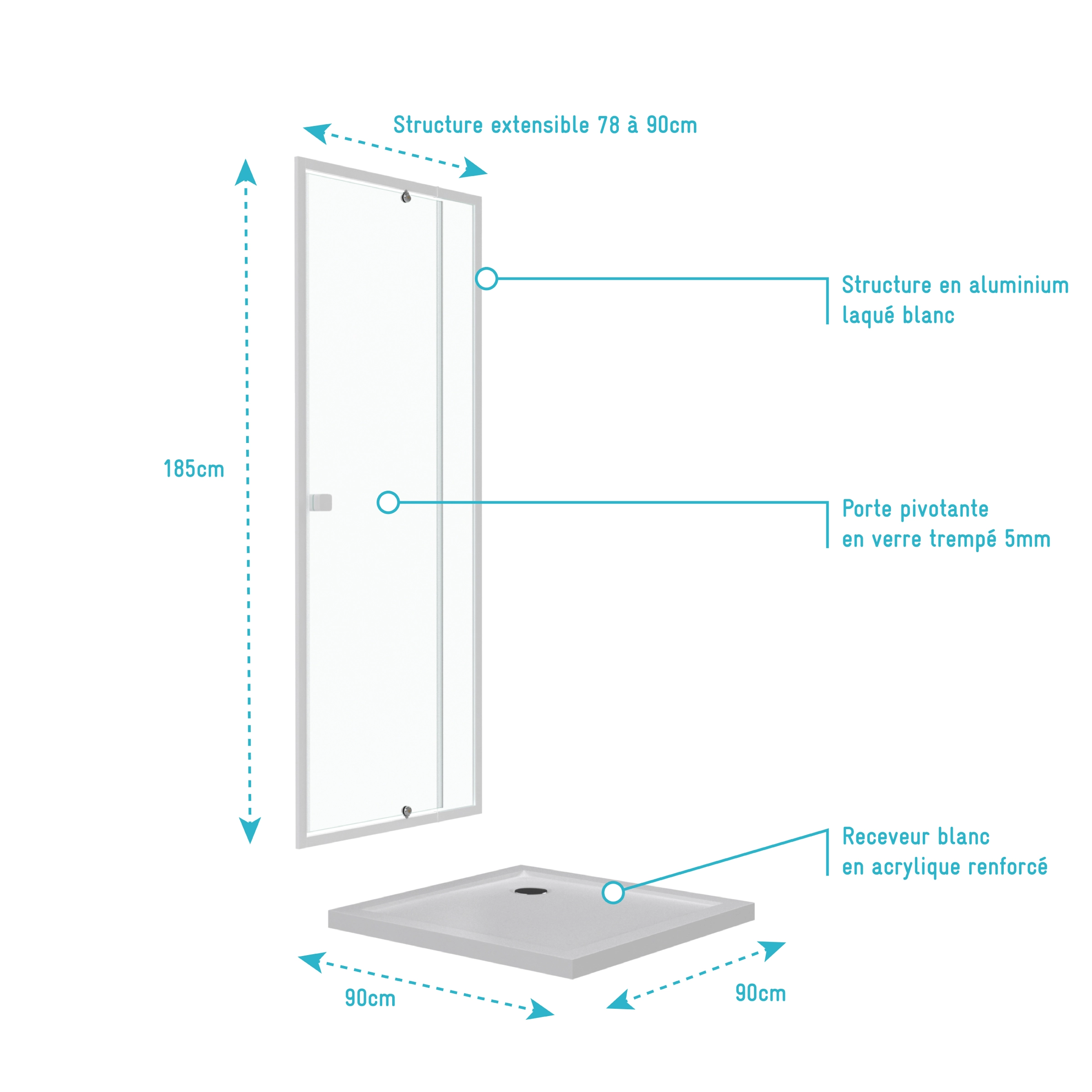 Pack porte de douche pivotant blanc de 78 à 90x185cm + receveur 90×90 – WHITY PIVOT