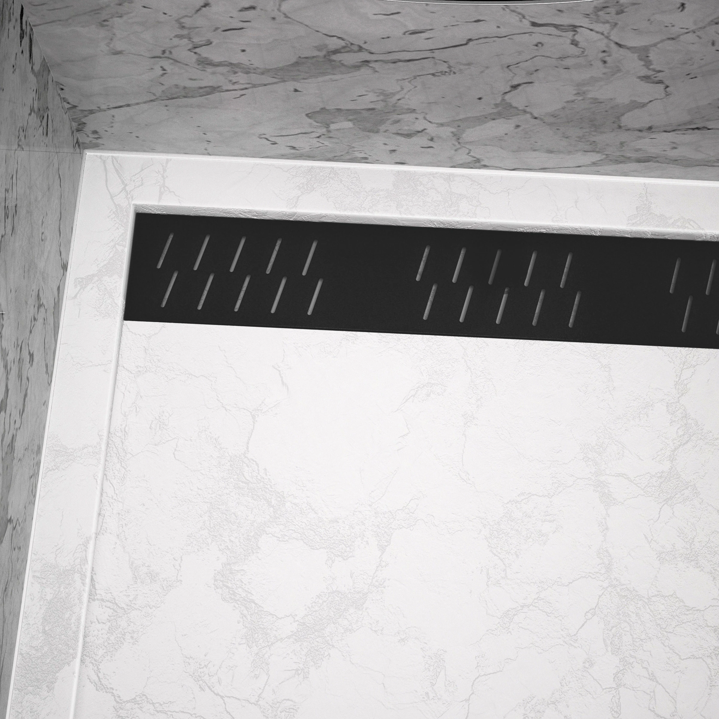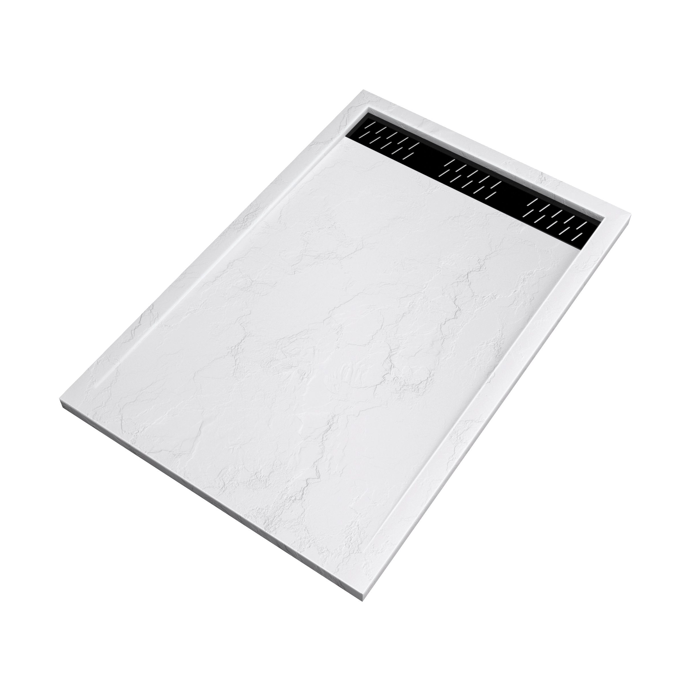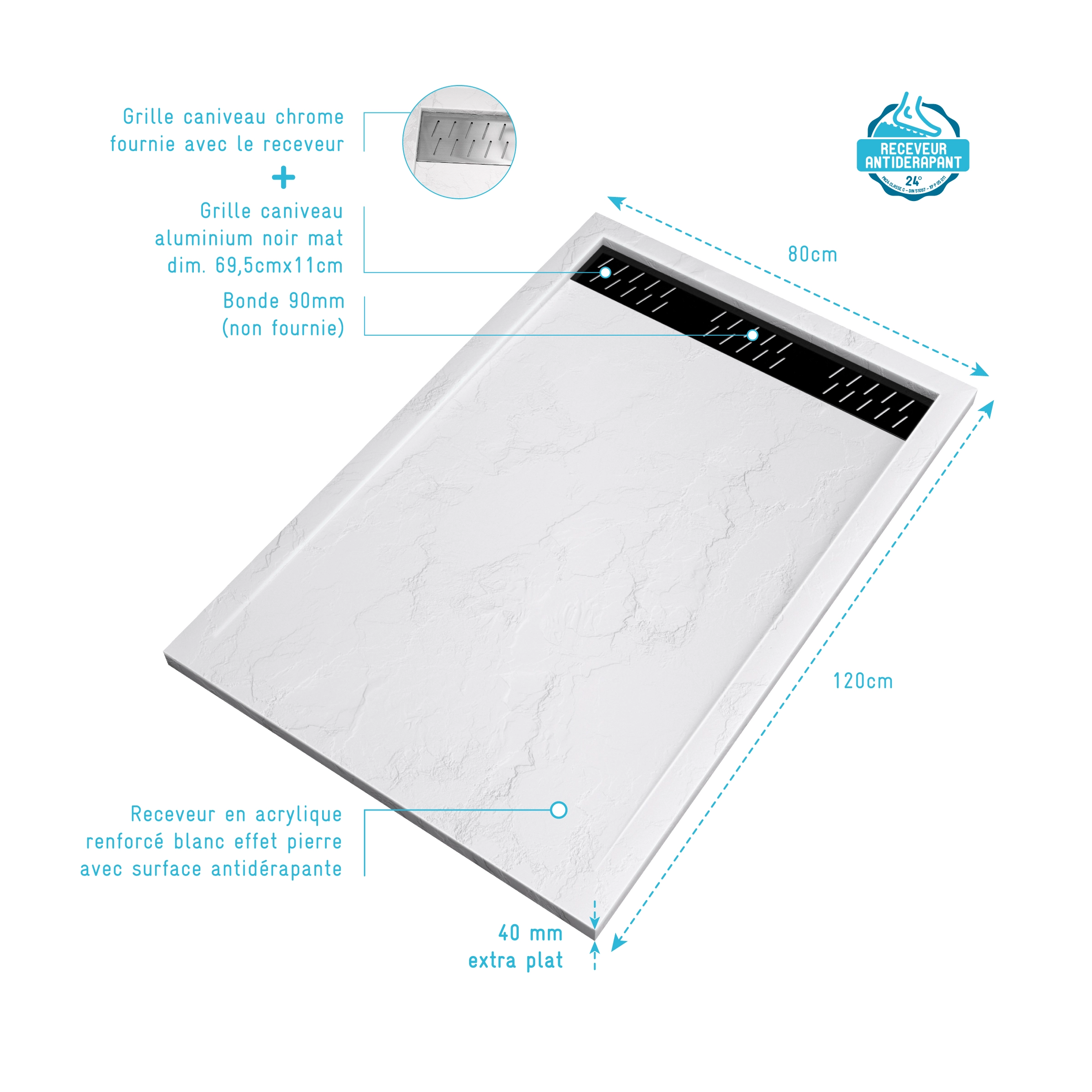 Receveur en acrylique Blanc Effet Pierre 80x120x4 cm + Grilles Linéaires Chrome et Noire – MOON