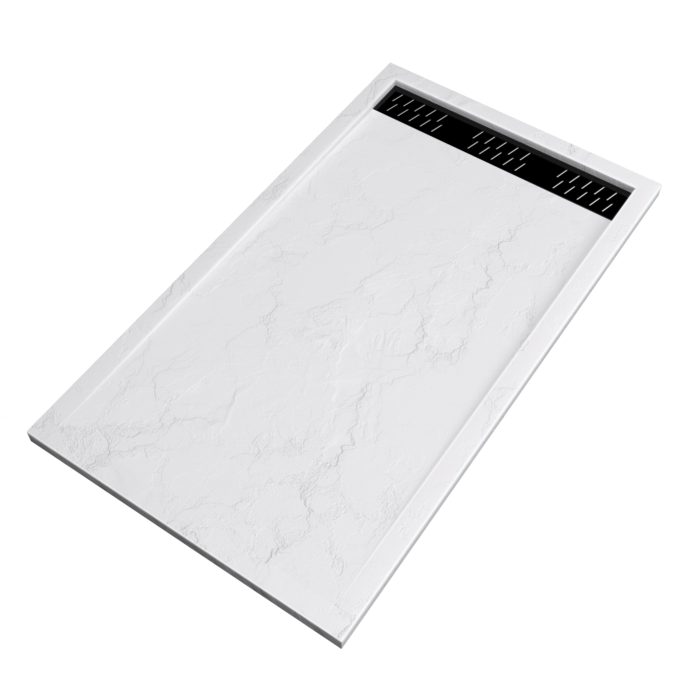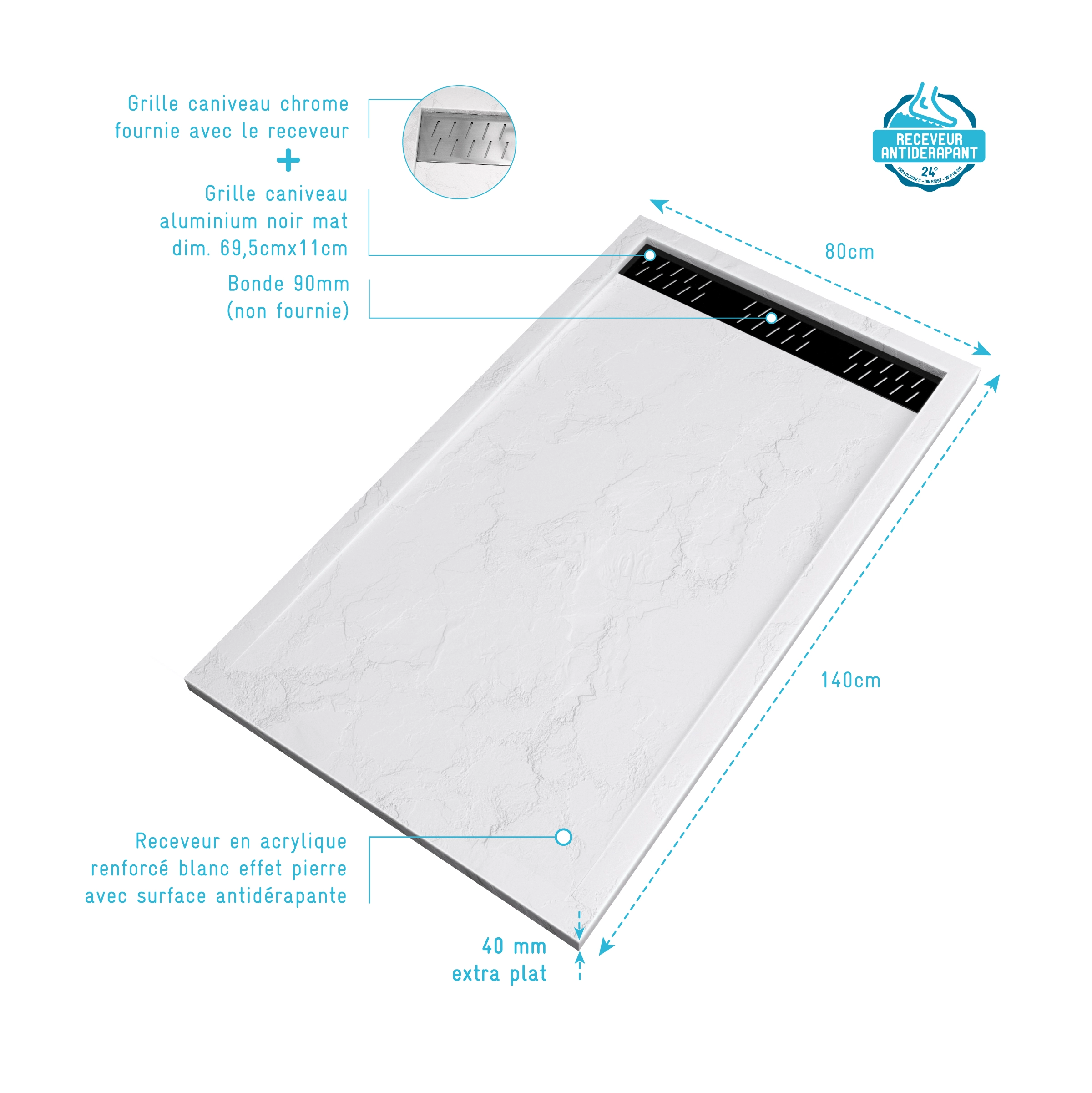 Receveur en acrylique Blanc Effet Pierre 80x140x5 cm + Grilles Linéaires Chrome et Noire – MOON