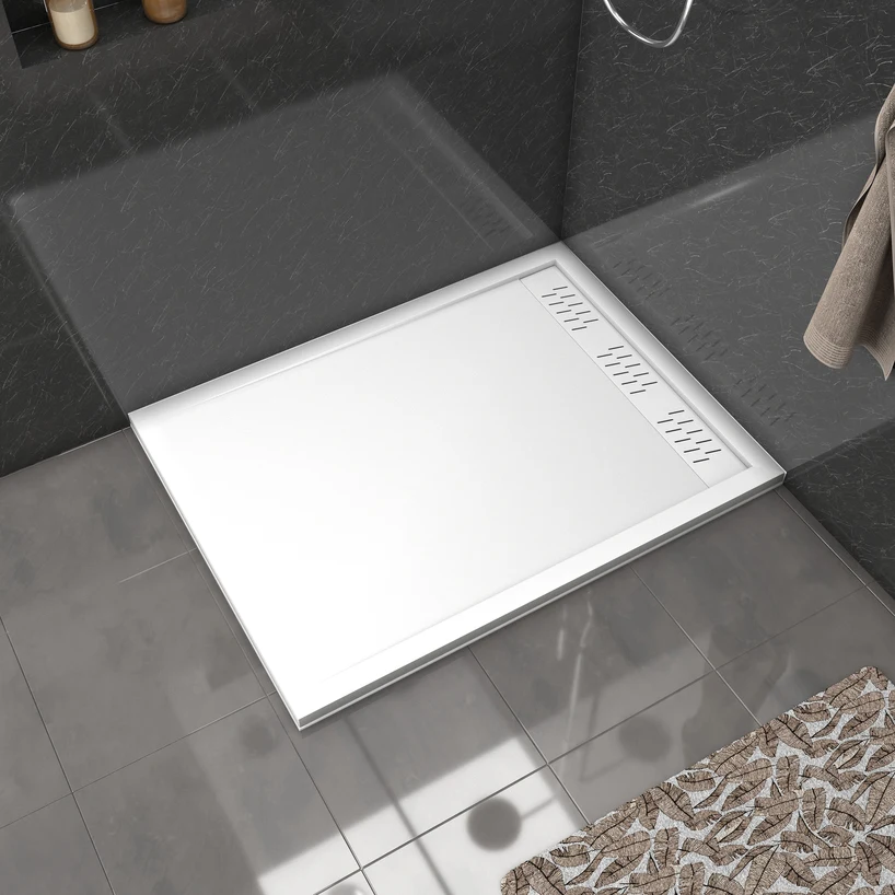 Receveur en acrylique Blanc 90x120x4 cm + Grilles Linéaires Chrome et Blanche Mate