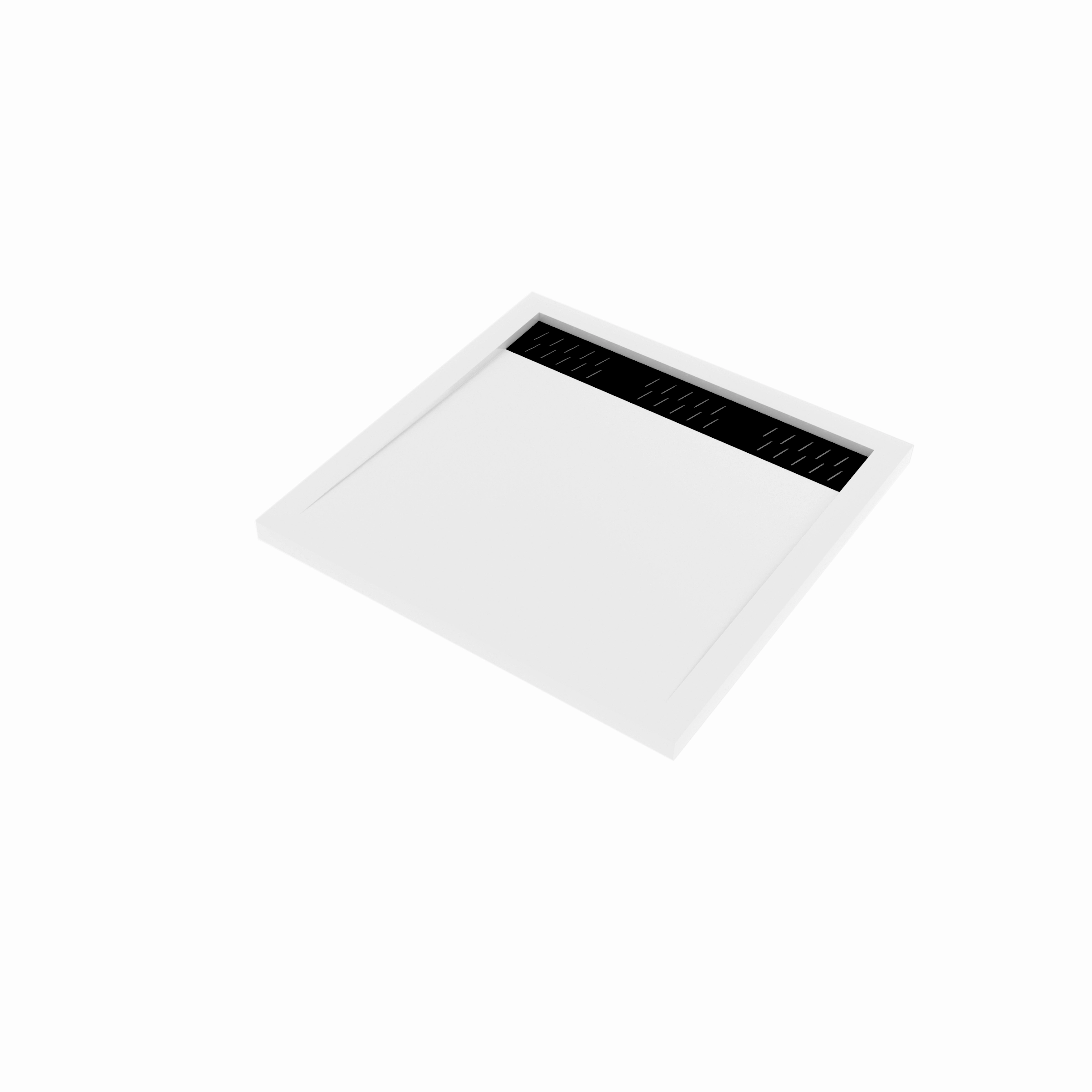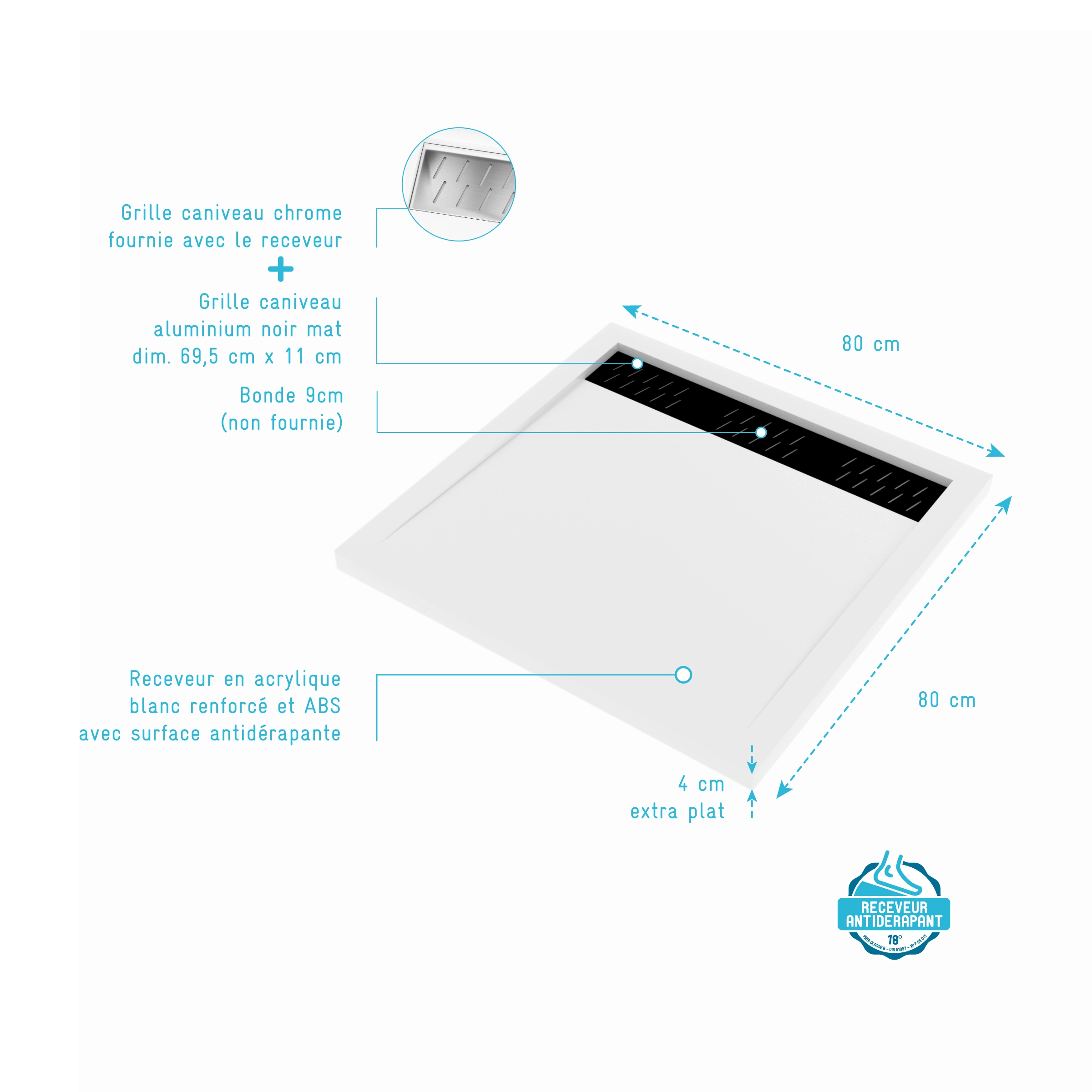 Receveur en acrylique Blanc 80x80x4 cm + Grilles Linéaires Chrome et Noire – WHITENESS II