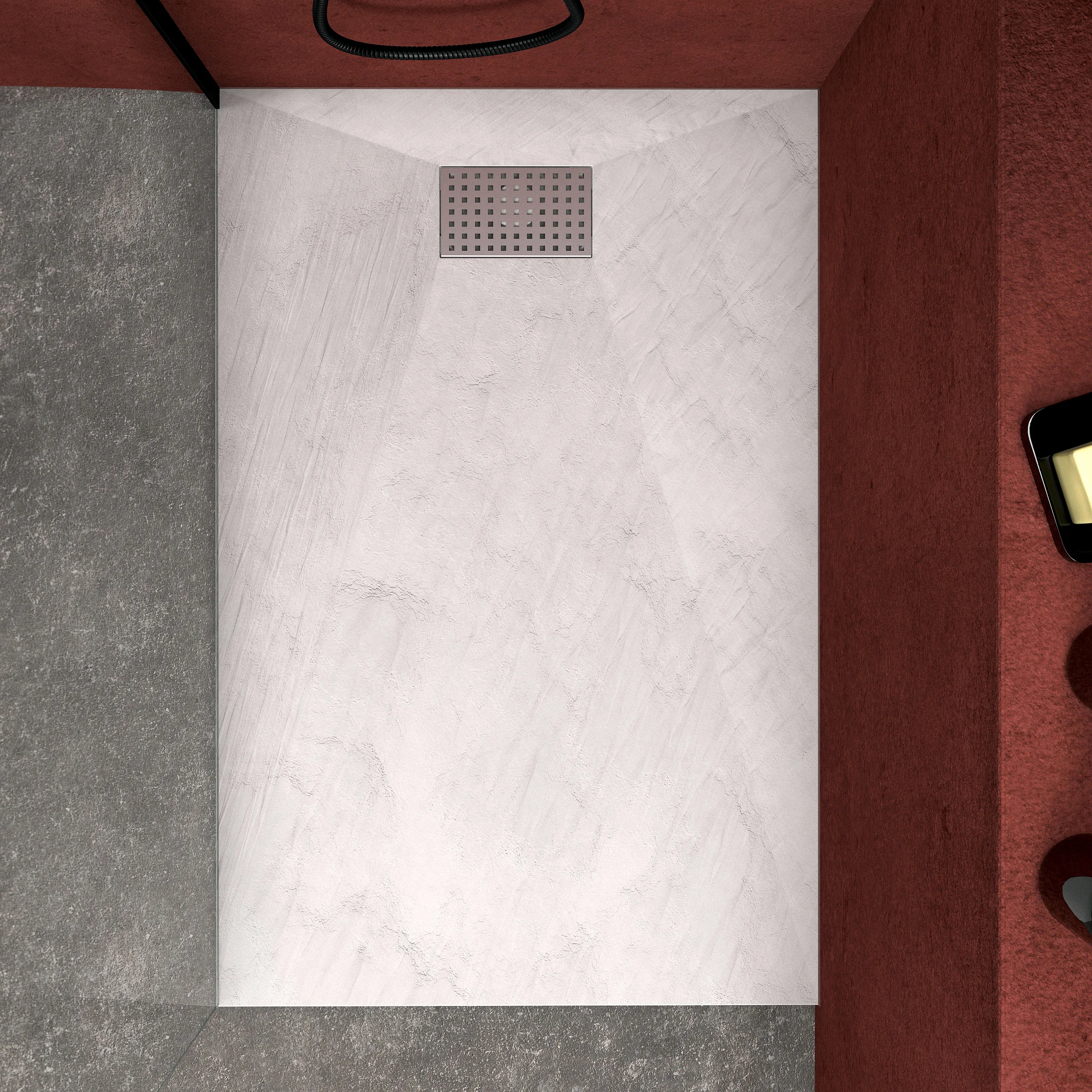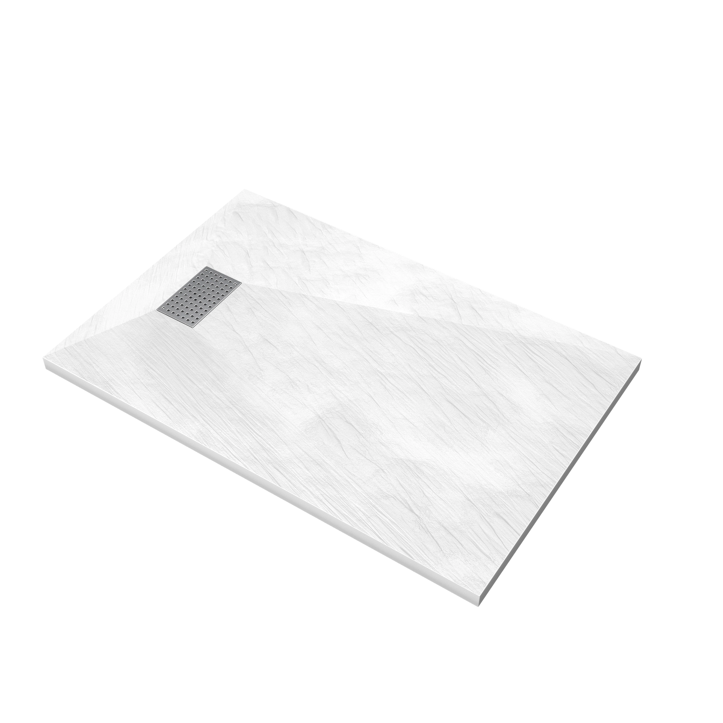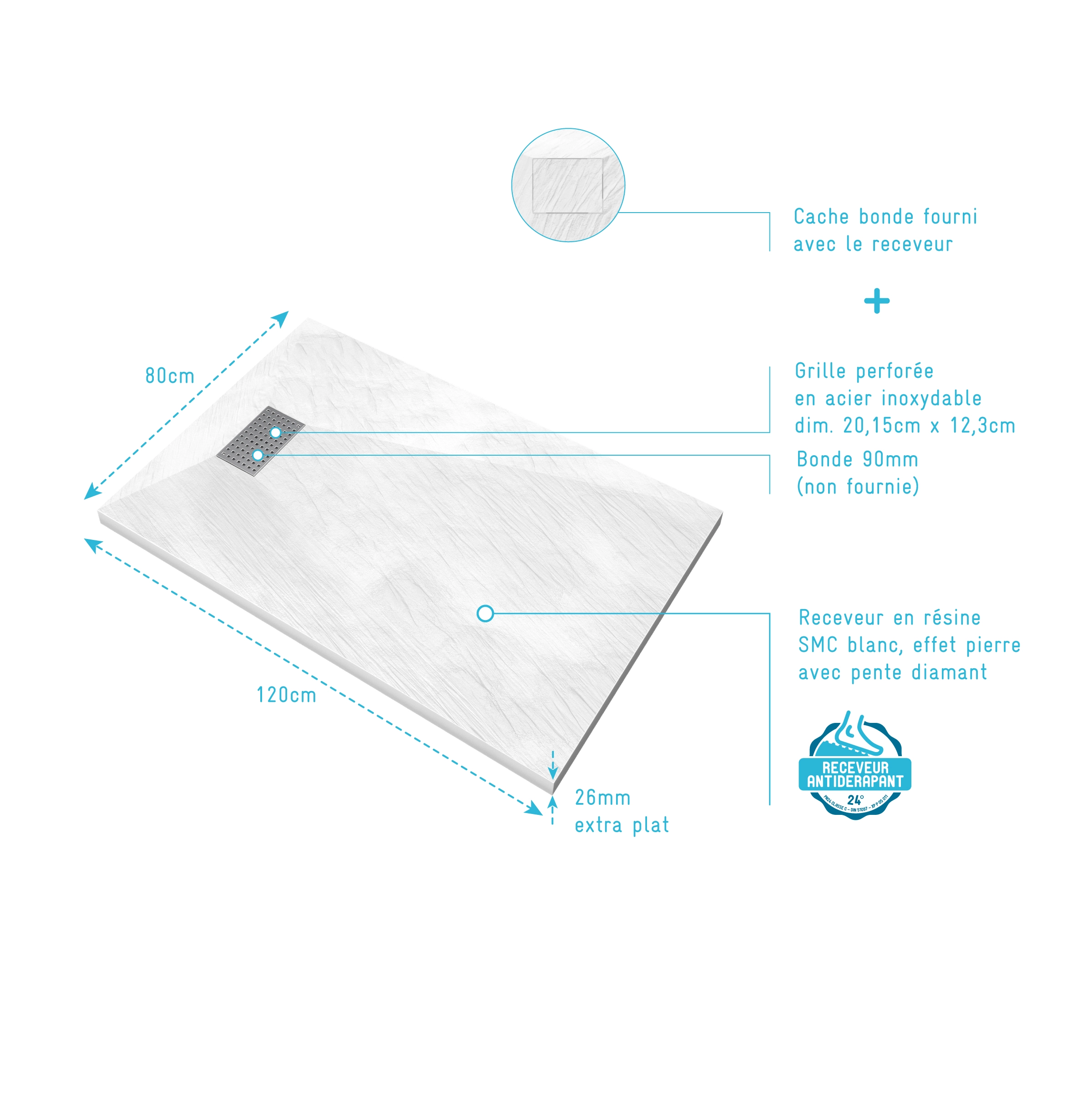 Receveur de douche Blanc Effet Pierre 80×120 cm et Grille décor Perforée en Inox