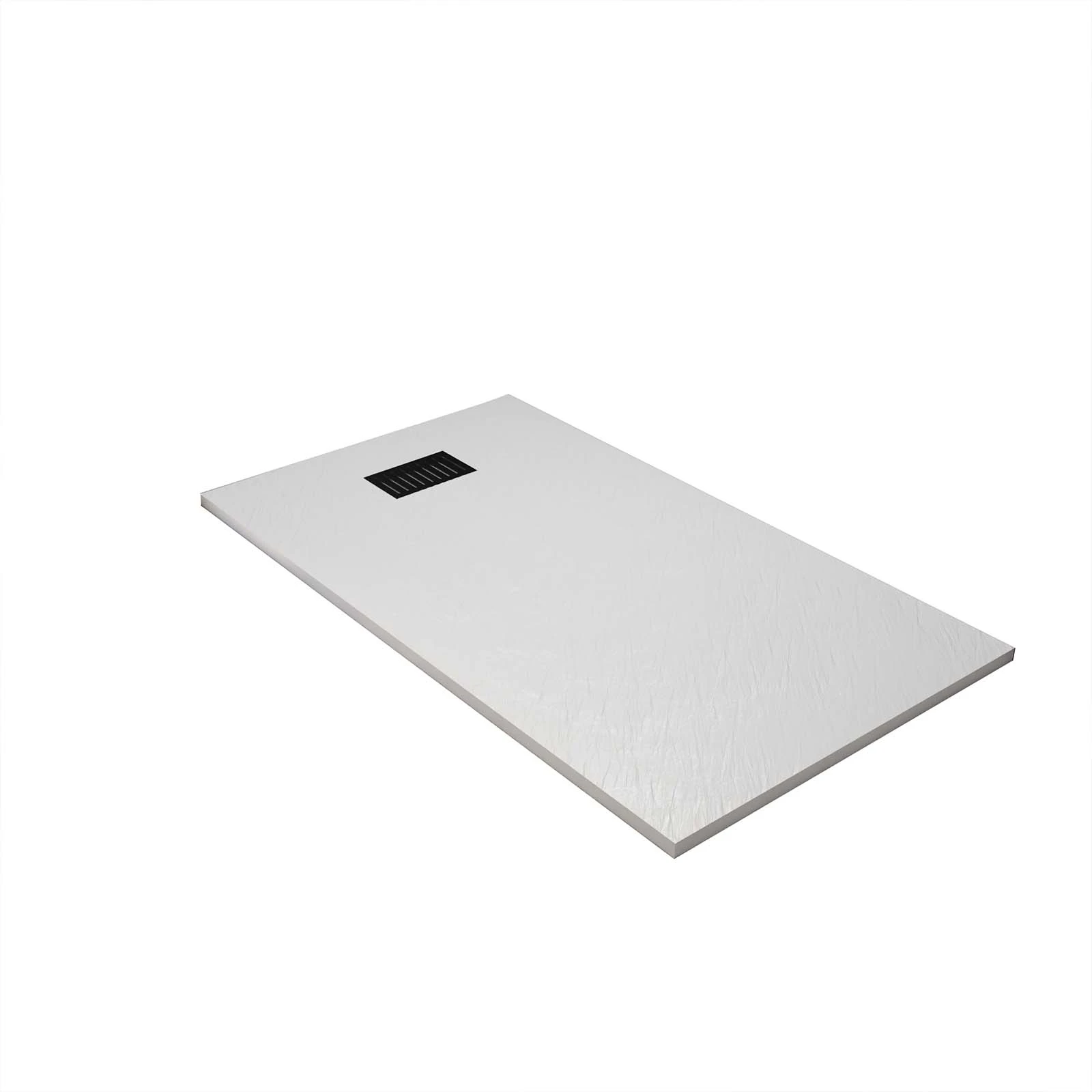 Receveur de douche Blanc Effet Pierre 80×120 cm et Grille décor Linéaire Noire Mate