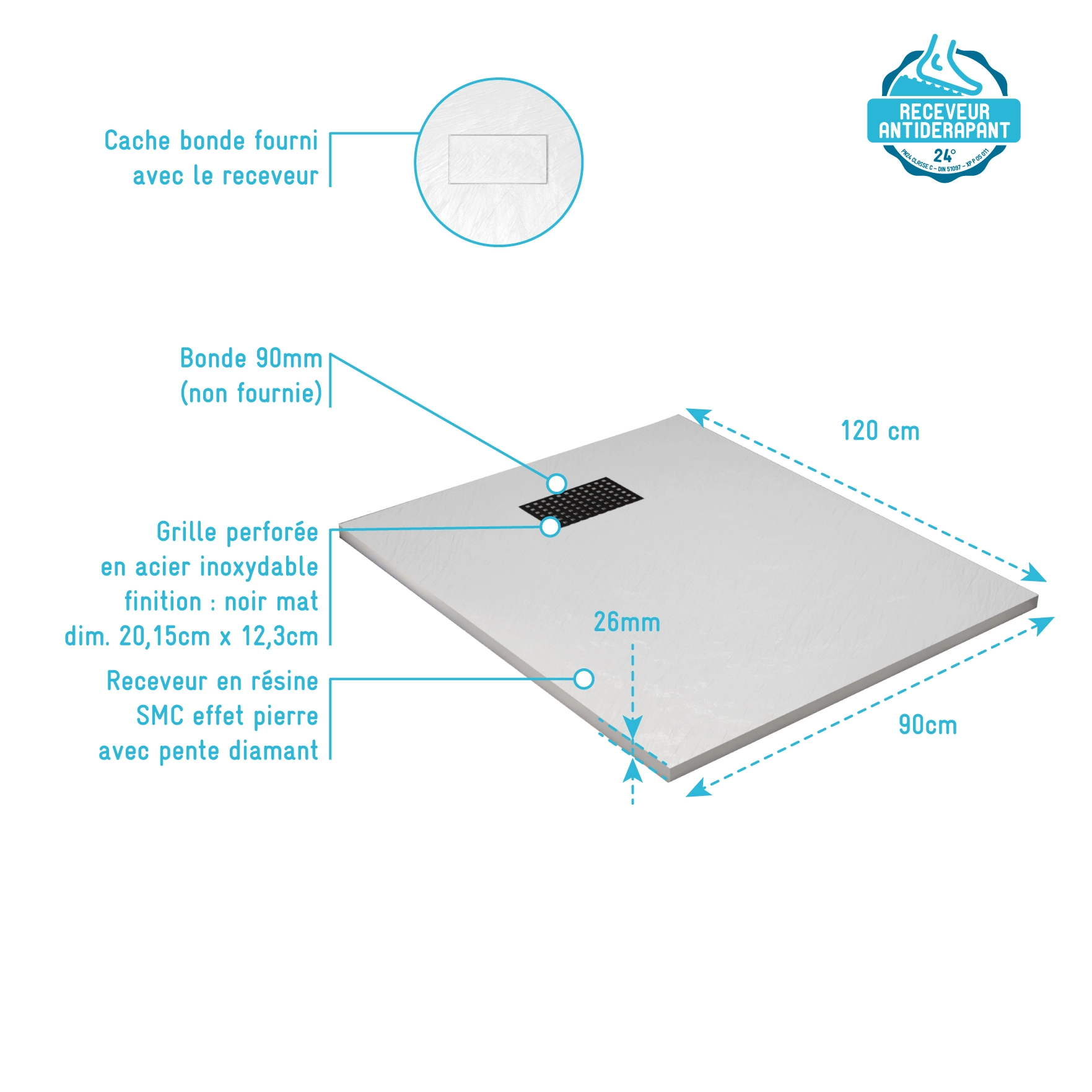 - Surface antidérapante 24°