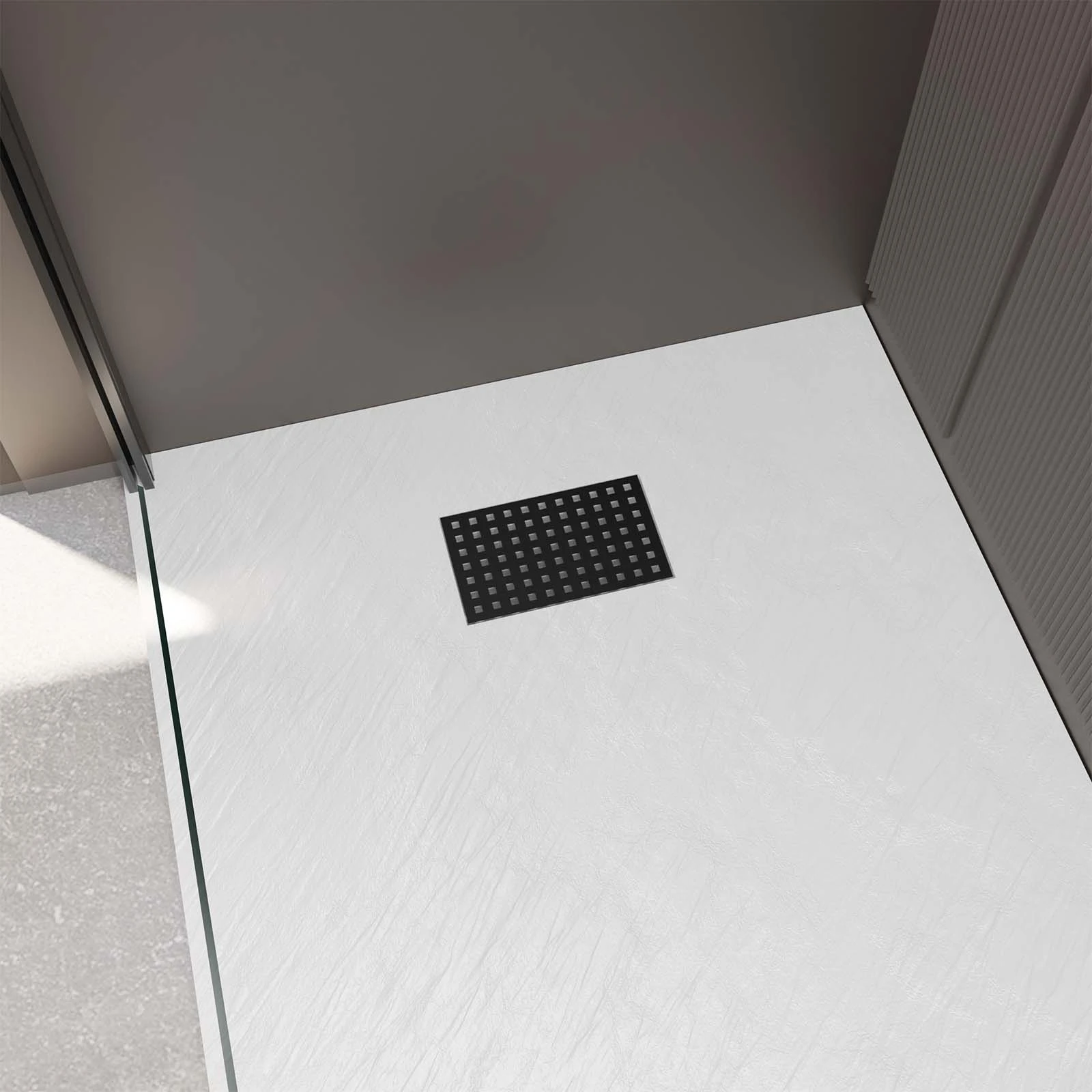 Receveur de douche Blanc Effet Pierre 90×120 cm et Grille décor Perforée Noire Mate