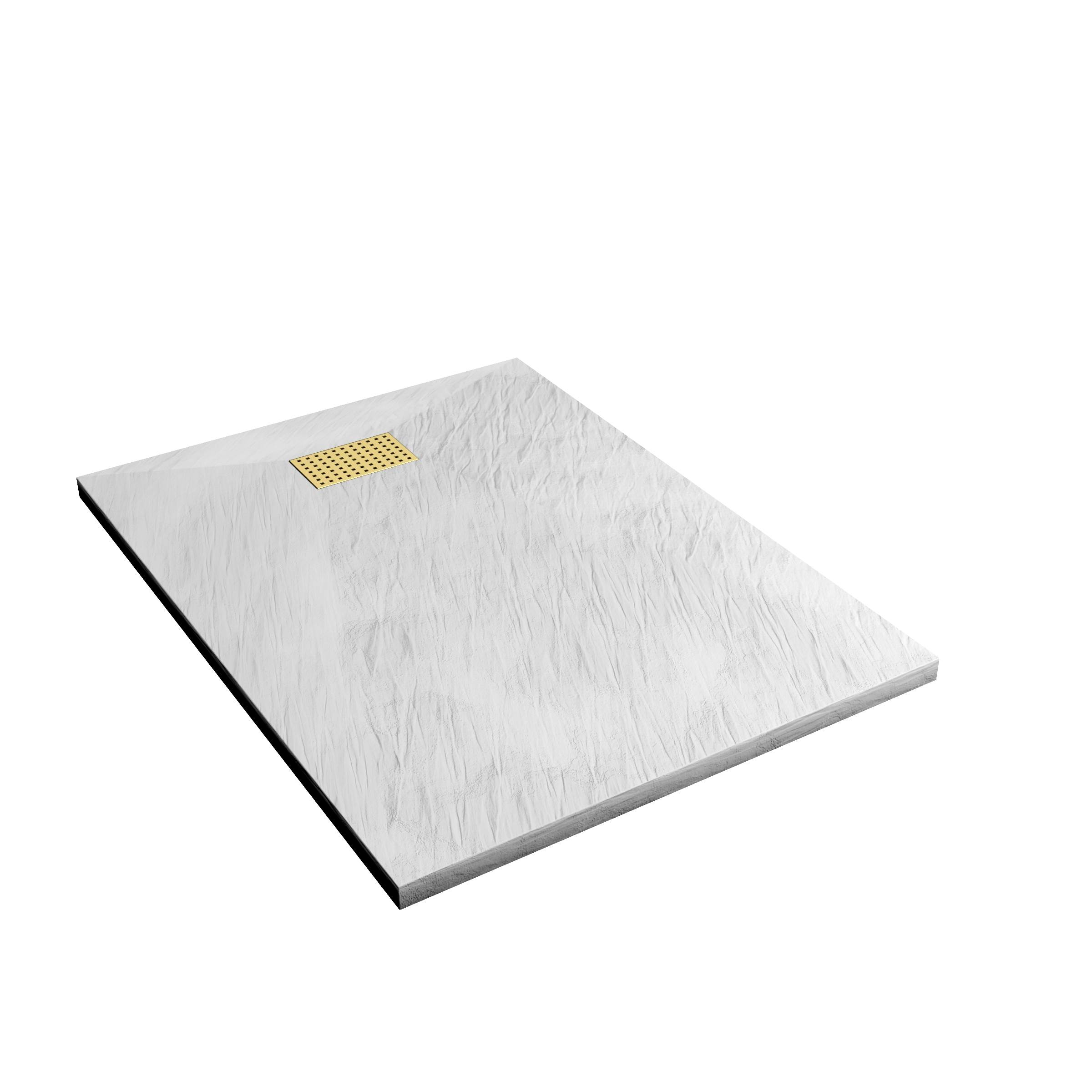 0 avis ATHENA Receveur de douche en résine blanc 90x120x3 cm effet pierre granit + grille linéaire or brossé