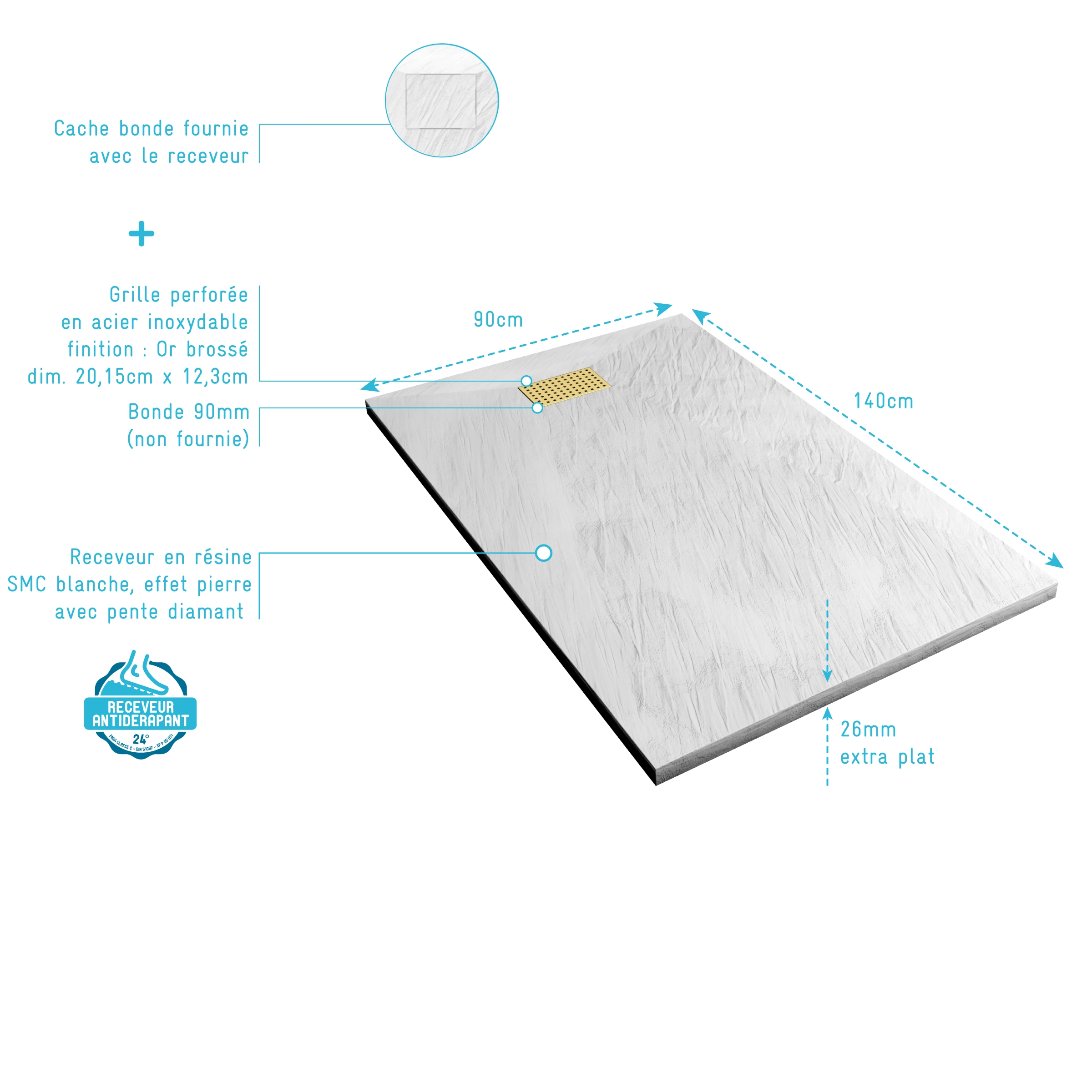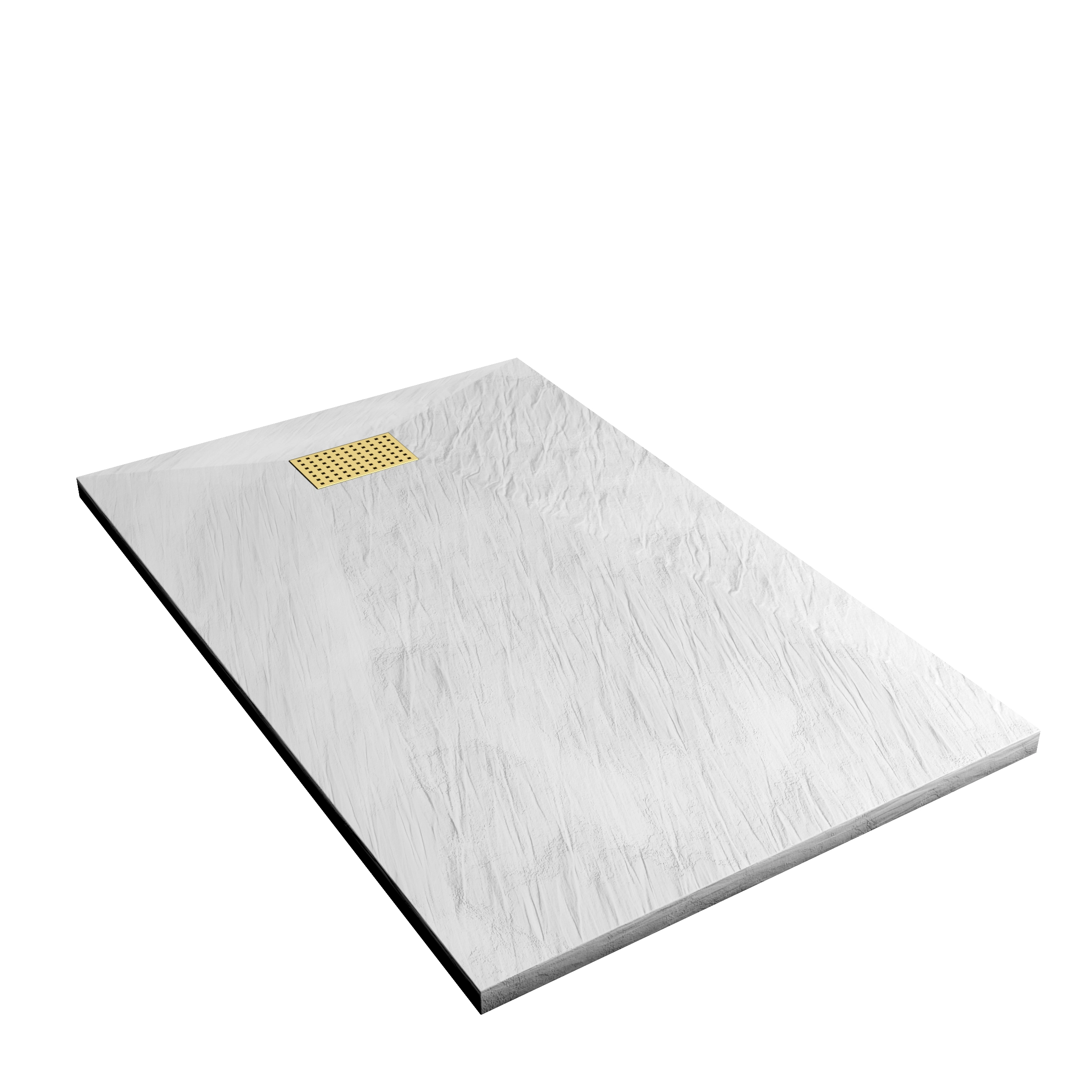 0 avis ATHENA Receveur de douche en résine blanc 90x140x3 cm effet pierre granit + grille linéaire or brossé