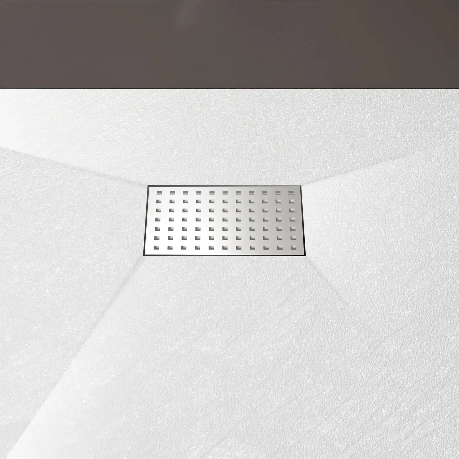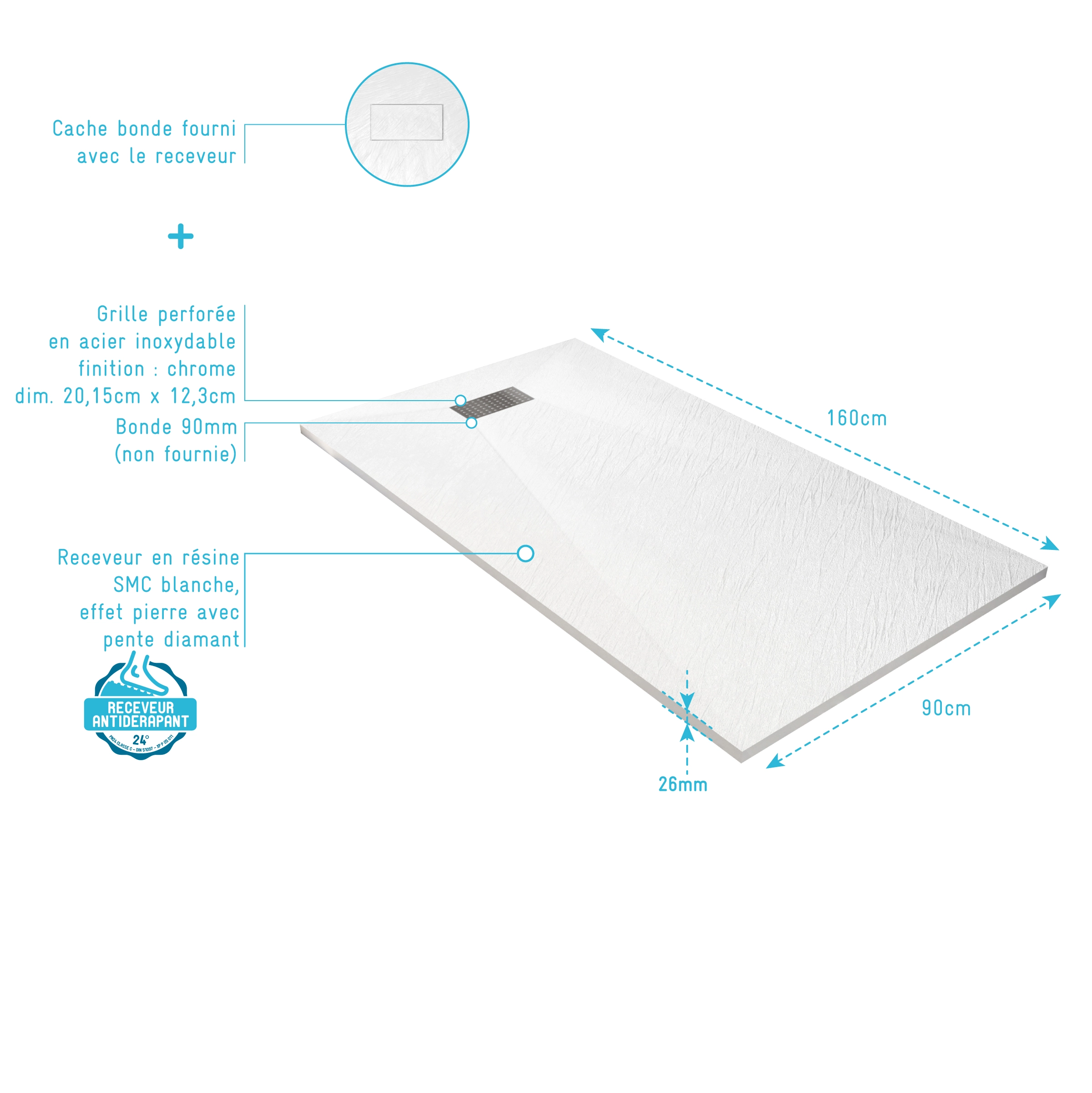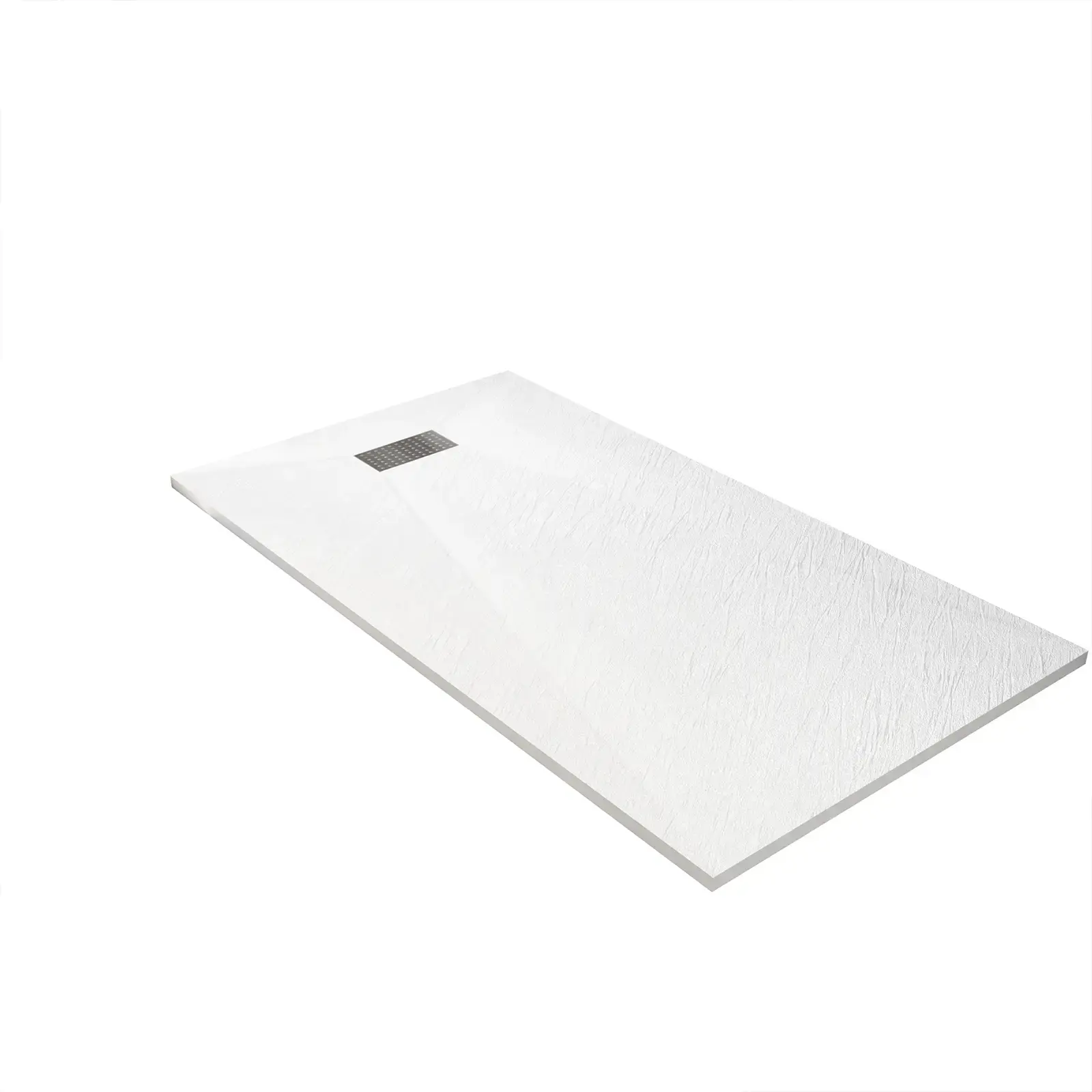 Receveur de douche Blanc Effet Pierre 90×160 cm et Grille décor Perforée en Inox