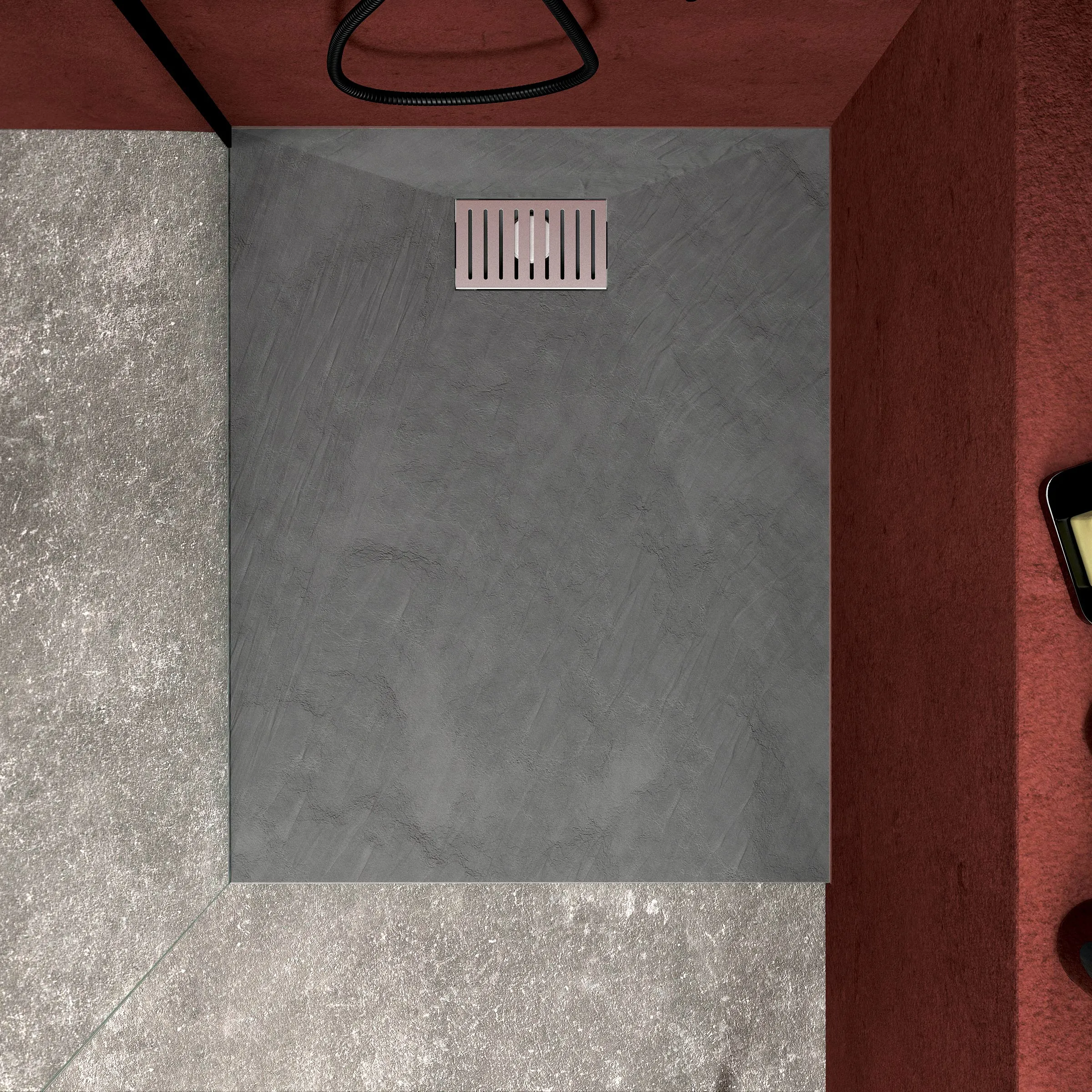 0 avis METEORA Receveur en acrylique Gris Effet Pierre 80x100x4cm + Grilles Linéaires Chrome et Gun Metal - METEORA