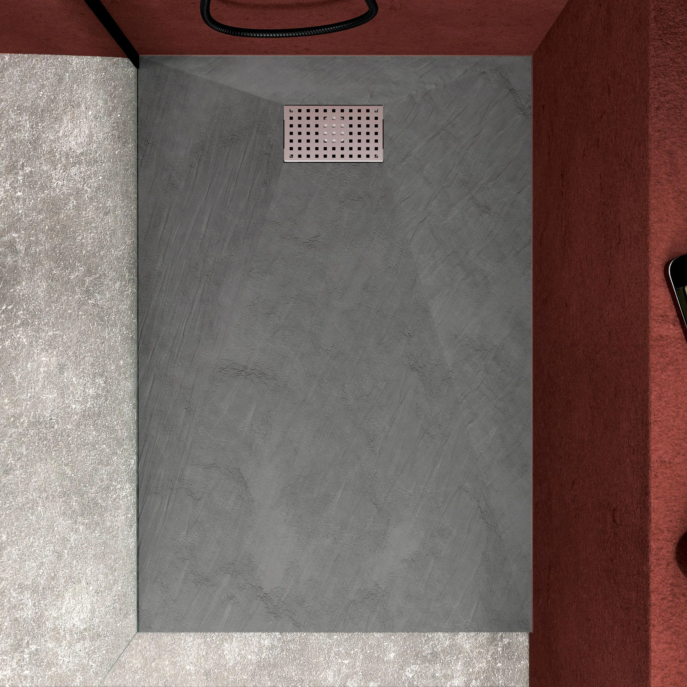 • Receveur de douche Gris Effet Pierre 90x140 cm et Grille décor Perforée en Inox