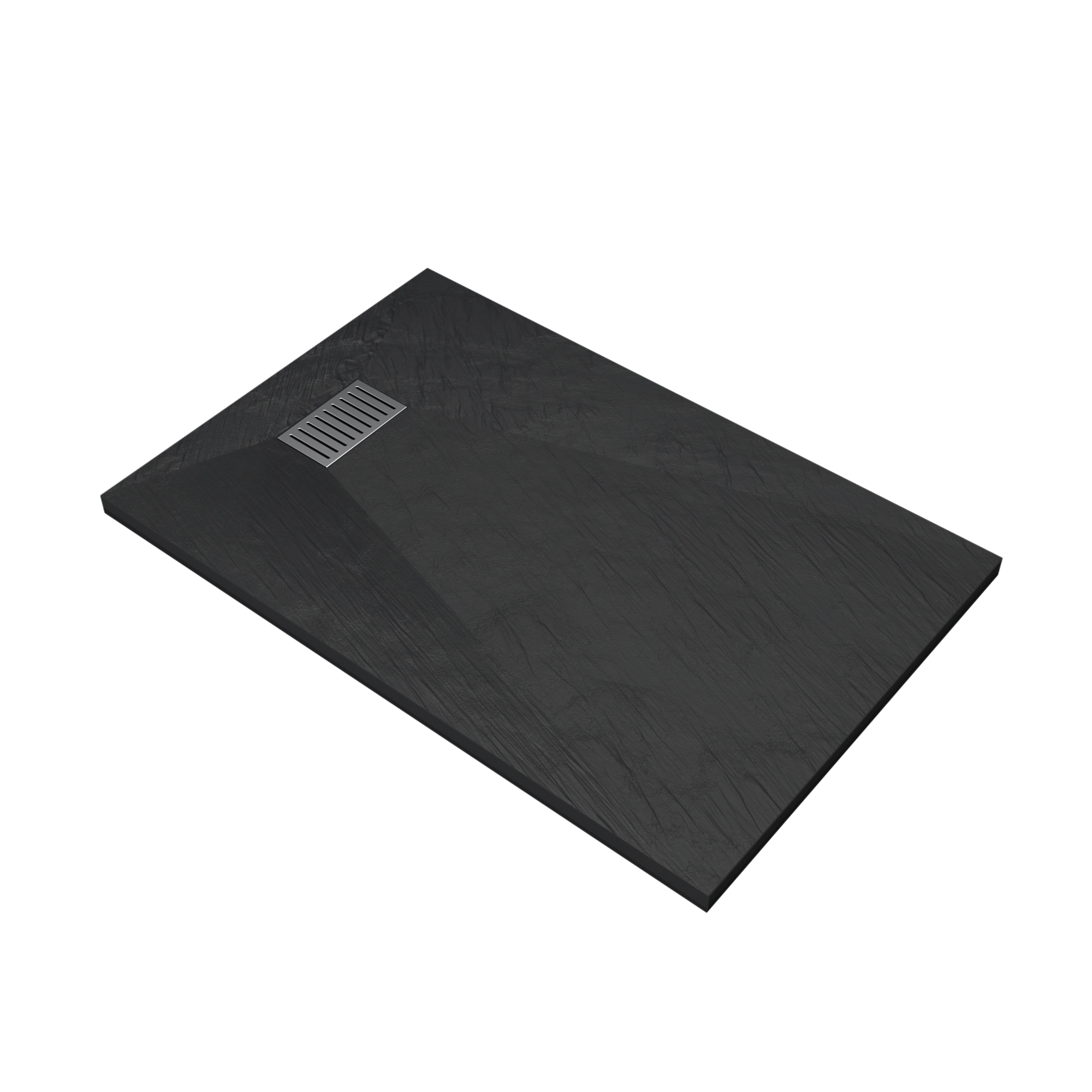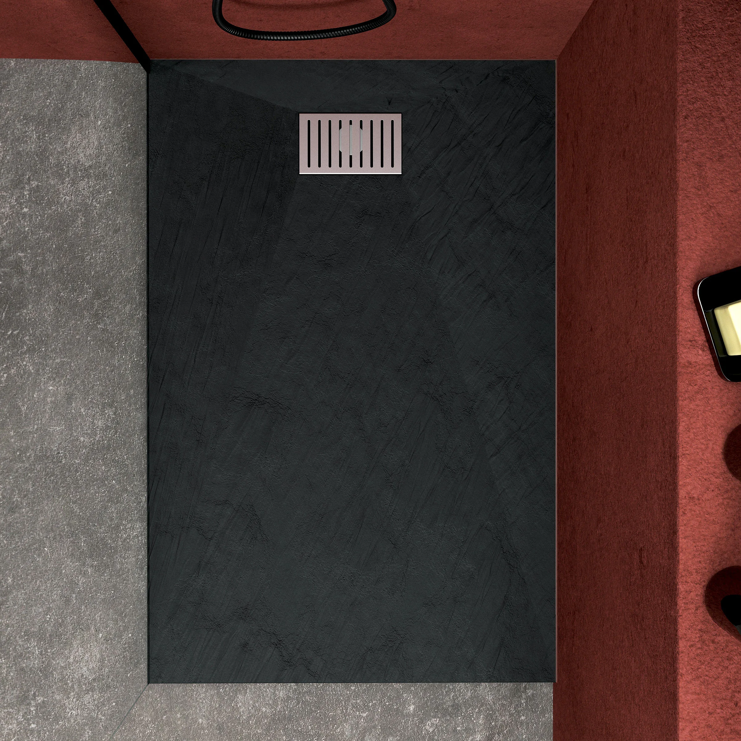 0 avis METEORA Receveur en acrylique Noir Effet Pierre 90x140x5 cm + Grilles Linéaires Chrome et Noire Mate